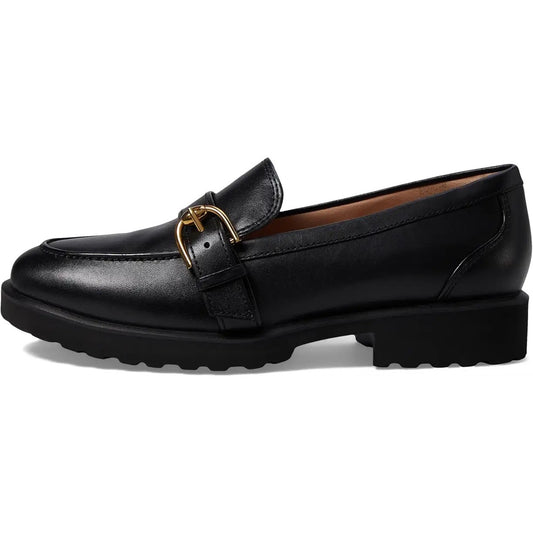 Cole Haan Womens Giana Buckle Loafers US 8 B EU 38.5 Black Leather NIB