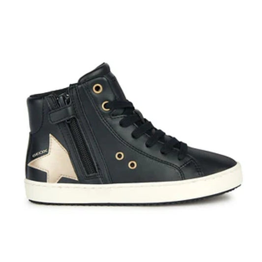 GEOX Girls J Kalispera High Top Sneakers US 3.5 EU 35 Black Star Lace Up NIB