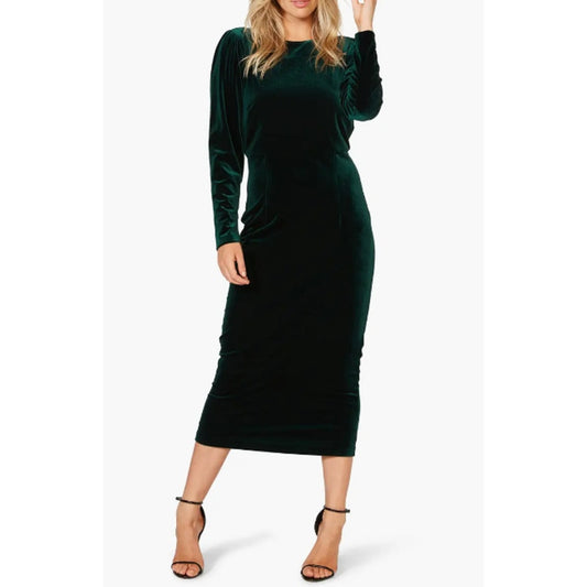 BARDOT Women's Kalani Cowl Back Velvet Dress US 4 Dark Green Long Sleeve NWT