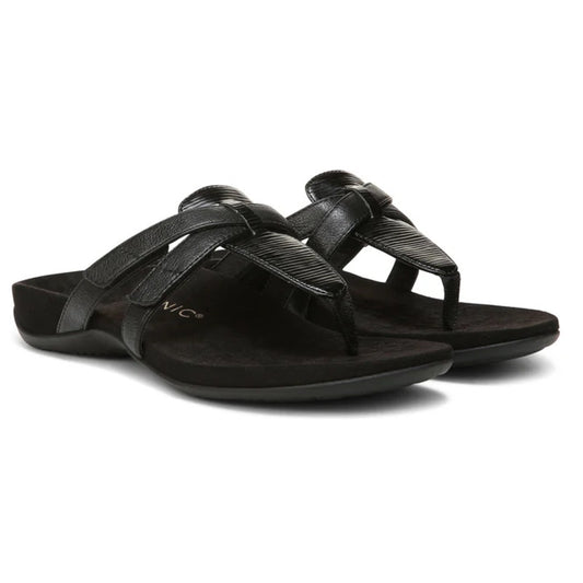 Vionic Womens Karley Thong Sandals US 6 EU 36 Black Leather Slip On NIB