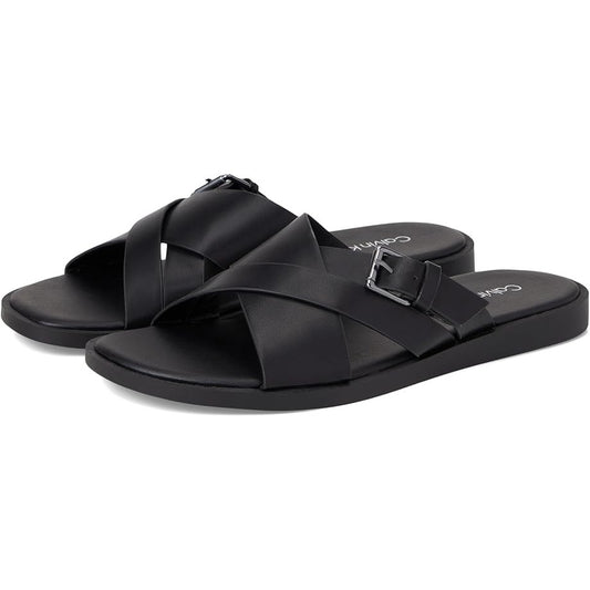 Calvin Klein Mens Elon Slip On Sandals US 13 M Black Vegan Leather NIB
