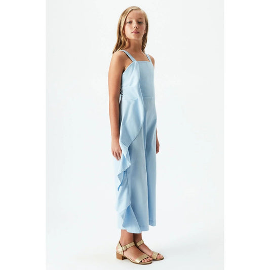 BARDOT JUNIOR Girl's Nelly Ruffle Jumpsuits 14 Sky Blue Square Neck NWT