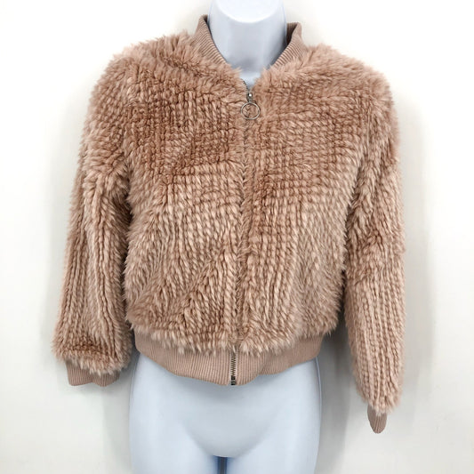 BARDOT JUNIOR Girls' Eve Faux-Fur Bomber Jacket Size 10 Pink Crystal NWT