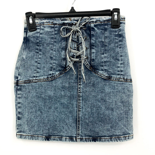 BARDOT Girls Corset Denim Skirt US 16 Blue Acid Wash Cotton NWT