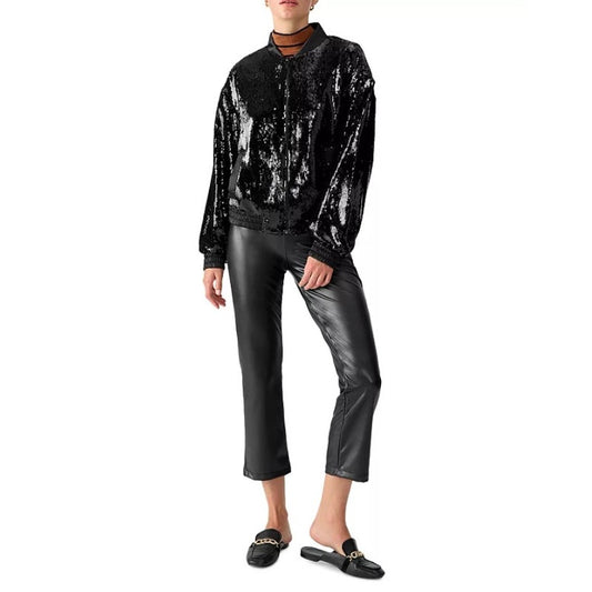 SANCTUARY Women's Sloan Sequined Bomber Jacket Black 1X