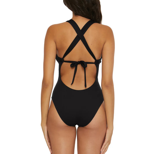 BECCA Women's Modern Edge One-Piece Swimsuit Large Black Corset Lace Up