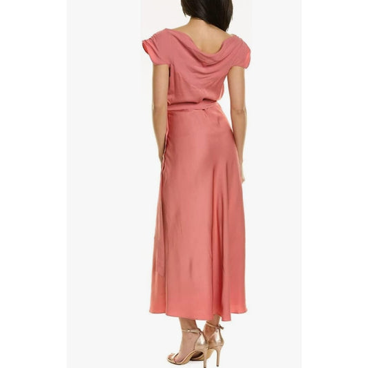 TED BAKER Women's Noemi Midi Dress Size 3 US 8 Dusky Pink V-Neck Bias Cut NWT