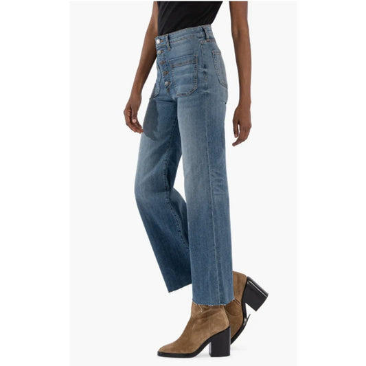 KUT FROM THE KLOTH Meg Wide Leg Jeans 00 Petite Blue Exposed Button NWT