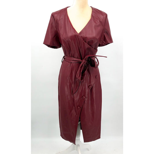 BARDOT Womens Vegan Leather Midi Wrap Dress Large US 8 Red Burgundy NWT