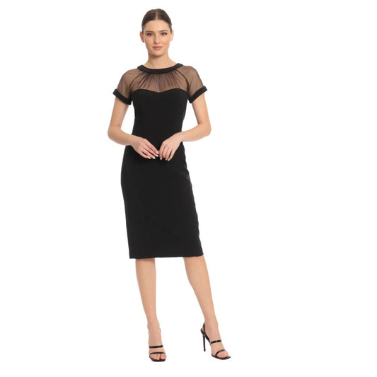 MAGGY LONDON Women's Short Sleeve Illusion Sheath Dress Size 4 Black V Back NWT