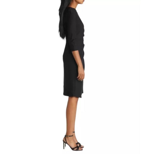 ELIZA J Pleated Faux Wrap Dress Size 14 Black Long Sleeve Knee Length NWT