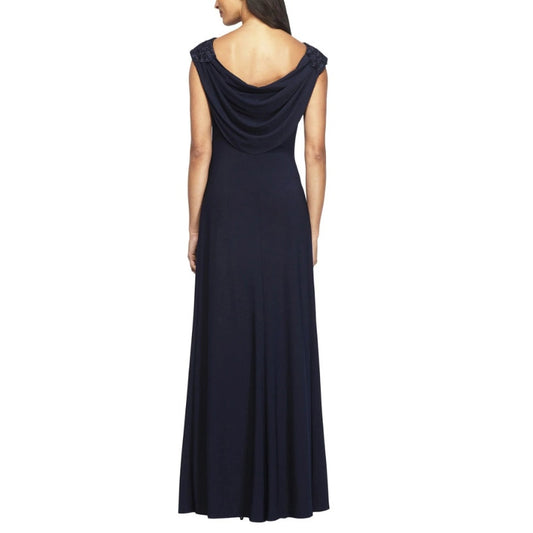 ALEX EVENINGS 132902 Grecian Gown Size 6 Navy Blue Jewel Accent NWT