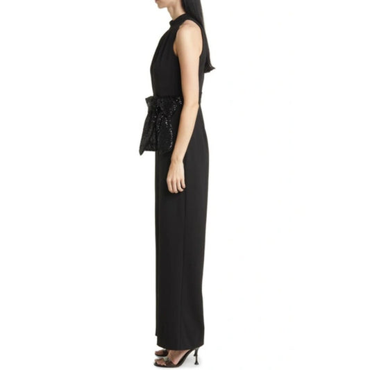 ELIZA J Sequin Bow Detail Sleeveless Jumpsuit In Black Size 6 Halter Neck NWT
