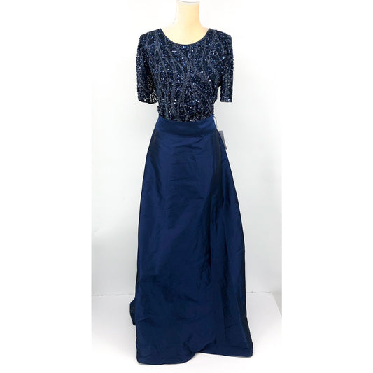 PISARRO NIGHTS Beaded Sequin Taffeta Skirt Gown 18W Navy Blue NWT