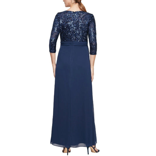 ALEX EVENINGS 8196784 Floral Sequin Formal Dress Size 10 Navy Blue NWT