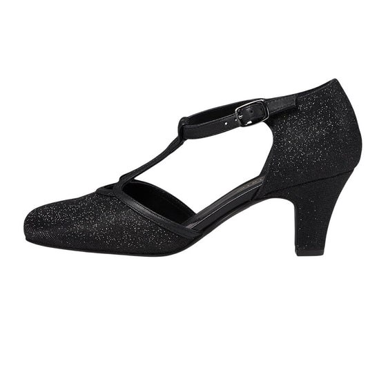 David Tate Womens Fantastic Heels 10 NARROW Black Glitter Fabric T-Strap NIB