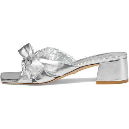 Stuart Weitzman Womens Sofia 45 Slide High Heels Size 6 Silver Leather Bow NIB