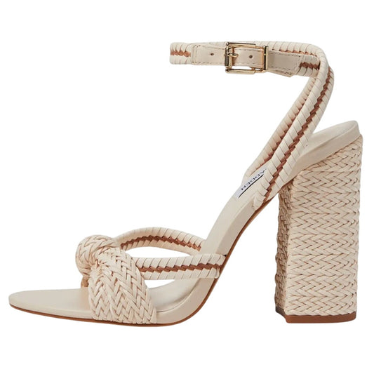 Steve Madden Womens Malou Heeled Sandals US 7.5 M EU 38 Tan Cream Leather NIB