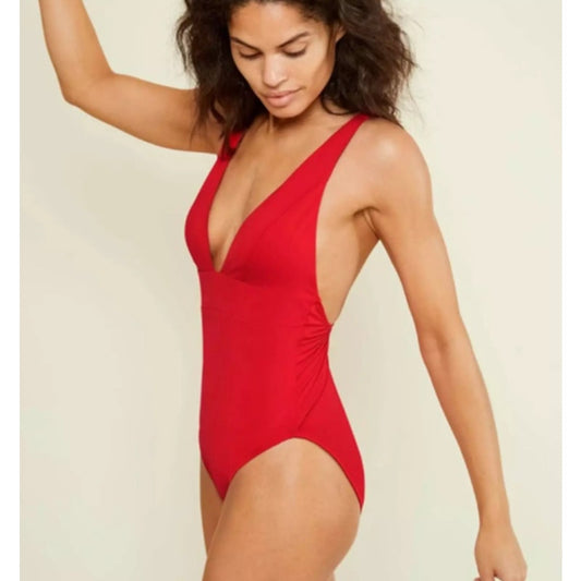 Andie Swim Womens The Bali One Piece Swimsuit Medium Tall Red Plunge