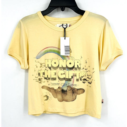 HONOR THE GIFT Women's Palms Cropped Graphic T-Shirt Small Yellow Blonde NWT