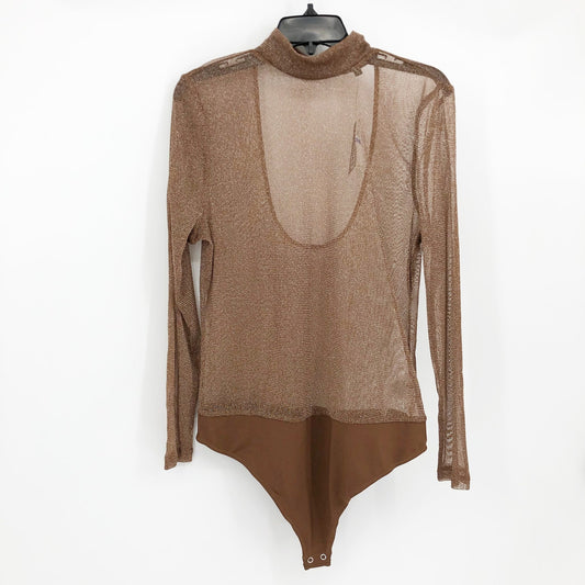 Royalty Maluma Women Sheer Turtleneck Bodysuit XL Brown Sparkle Long Sleeve NWT