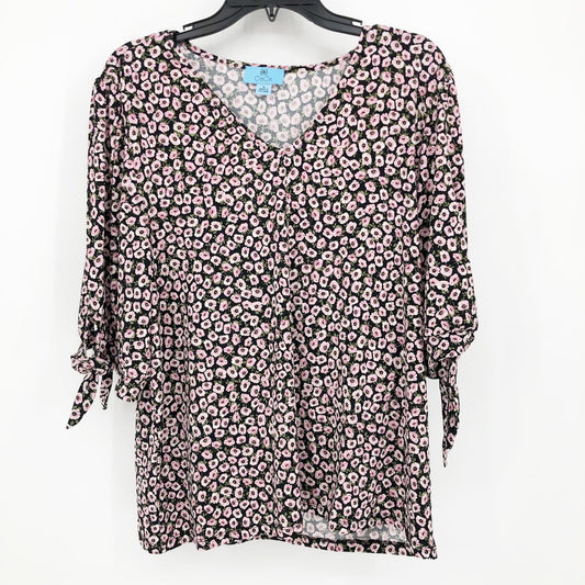 Cece Womens Floral V Neck Blouse Top XL Pink Black Tie Sleeve Pullover NWT