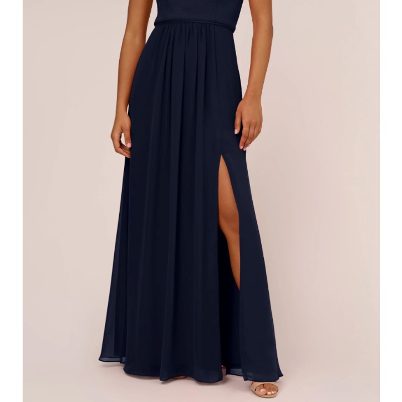 ADRIANNA PAPELL One-Shoulder Chiffon Long Gown
