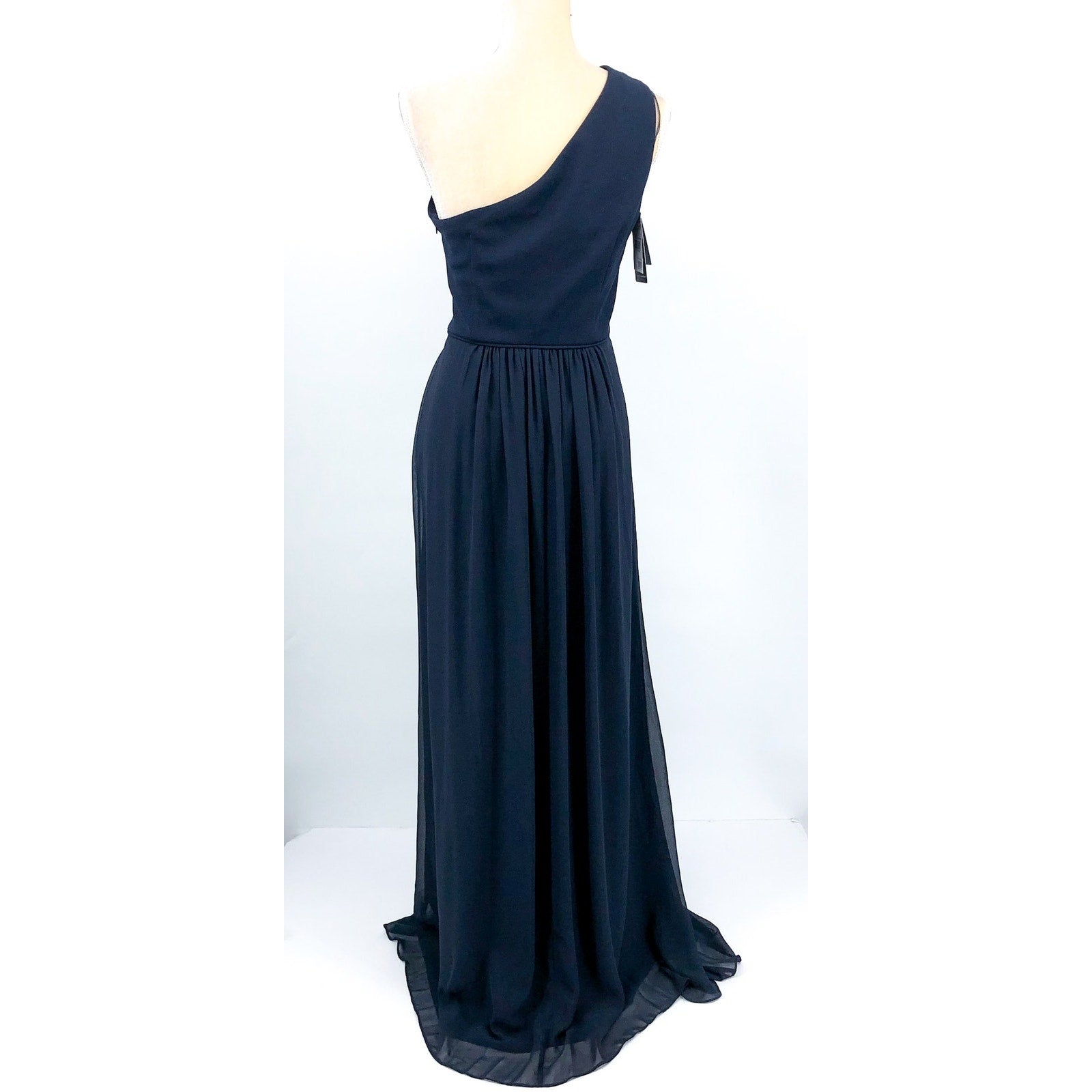 ADRIANNA PAPELL One-Shoulder Chiffon Long Gown Size 8 Midnight Blue Formal NWT