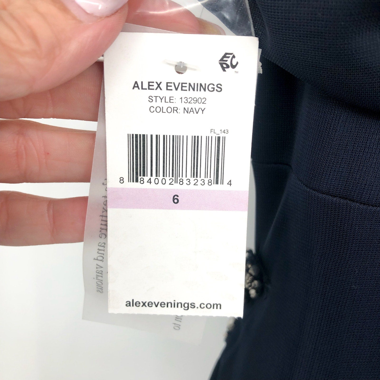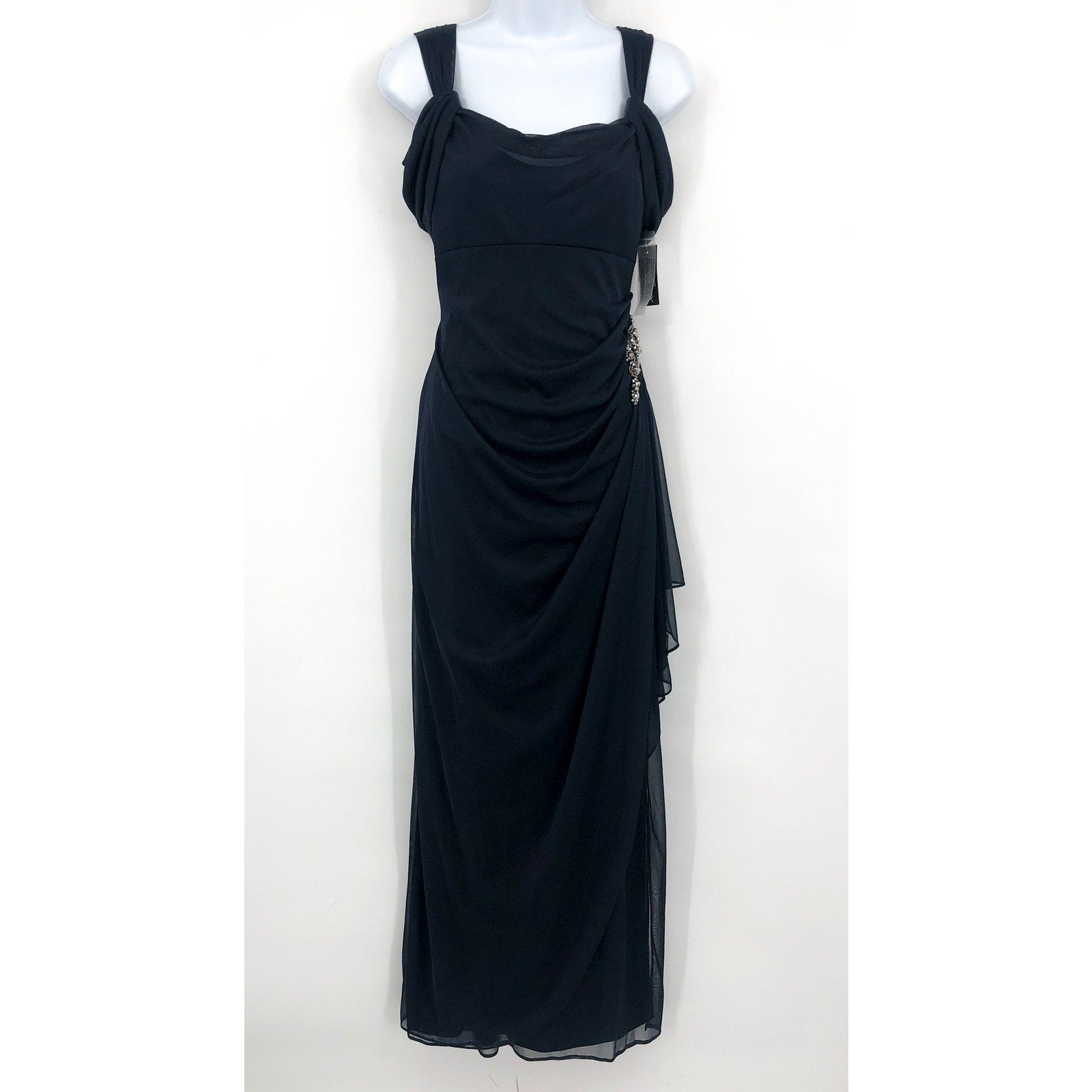ALEX EVENINGS 132902 Grecian Gown Size 6 Navy Blue Jewel Accent NWT
