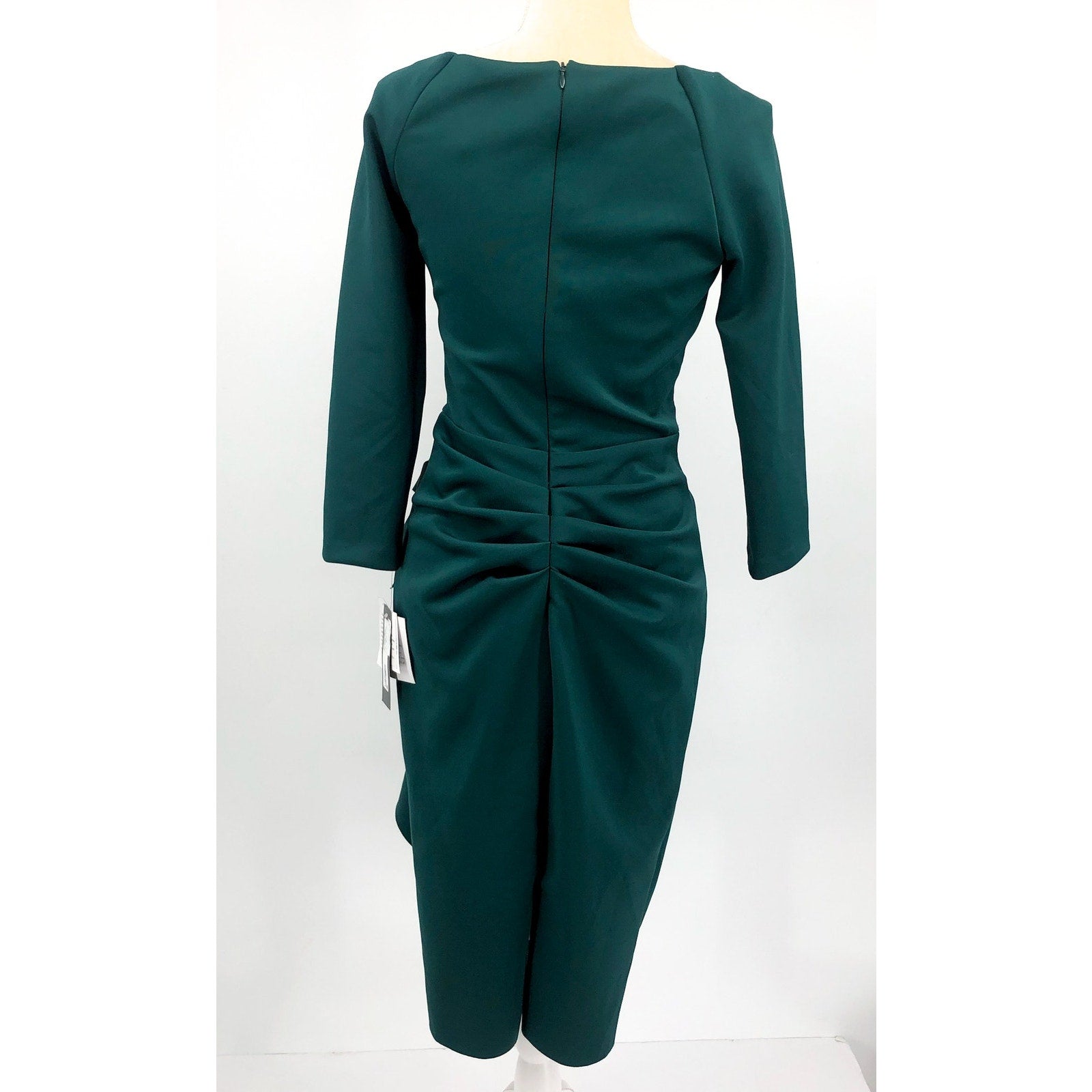 ALEX EVENINGS Allie Short Scuba Dress Size 6 Hunter Green Ruffle Long Sleeve NWT