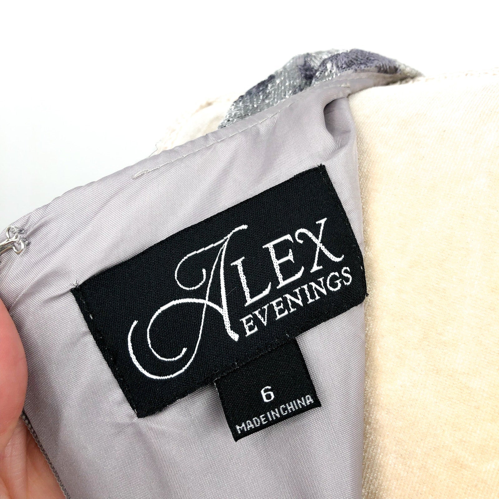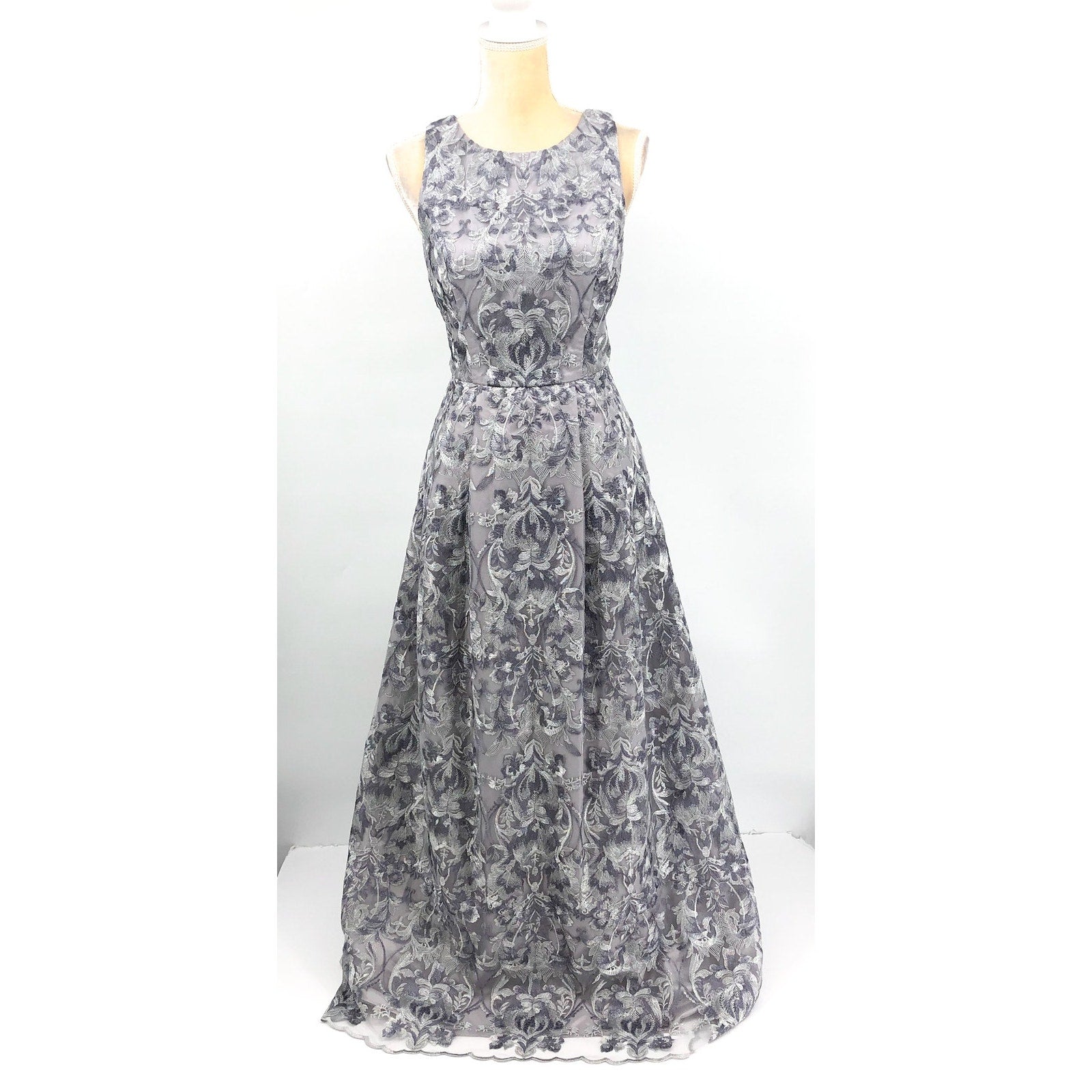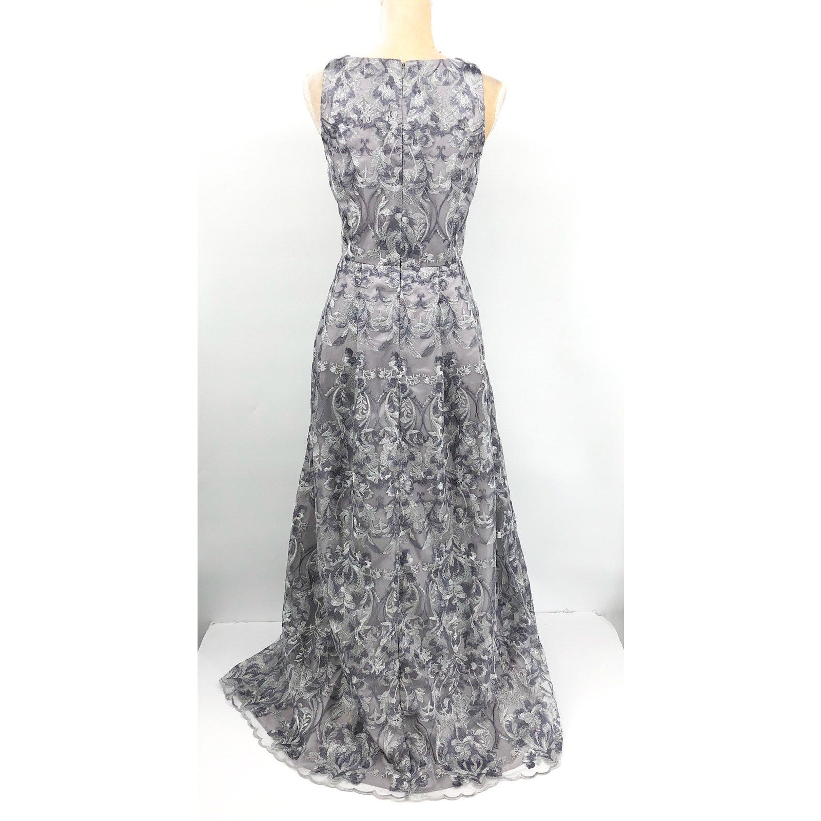 ALEX EVENINGS Embroidered Sleeveless Formal Gown Size 6 Pewter Silver NWOT
