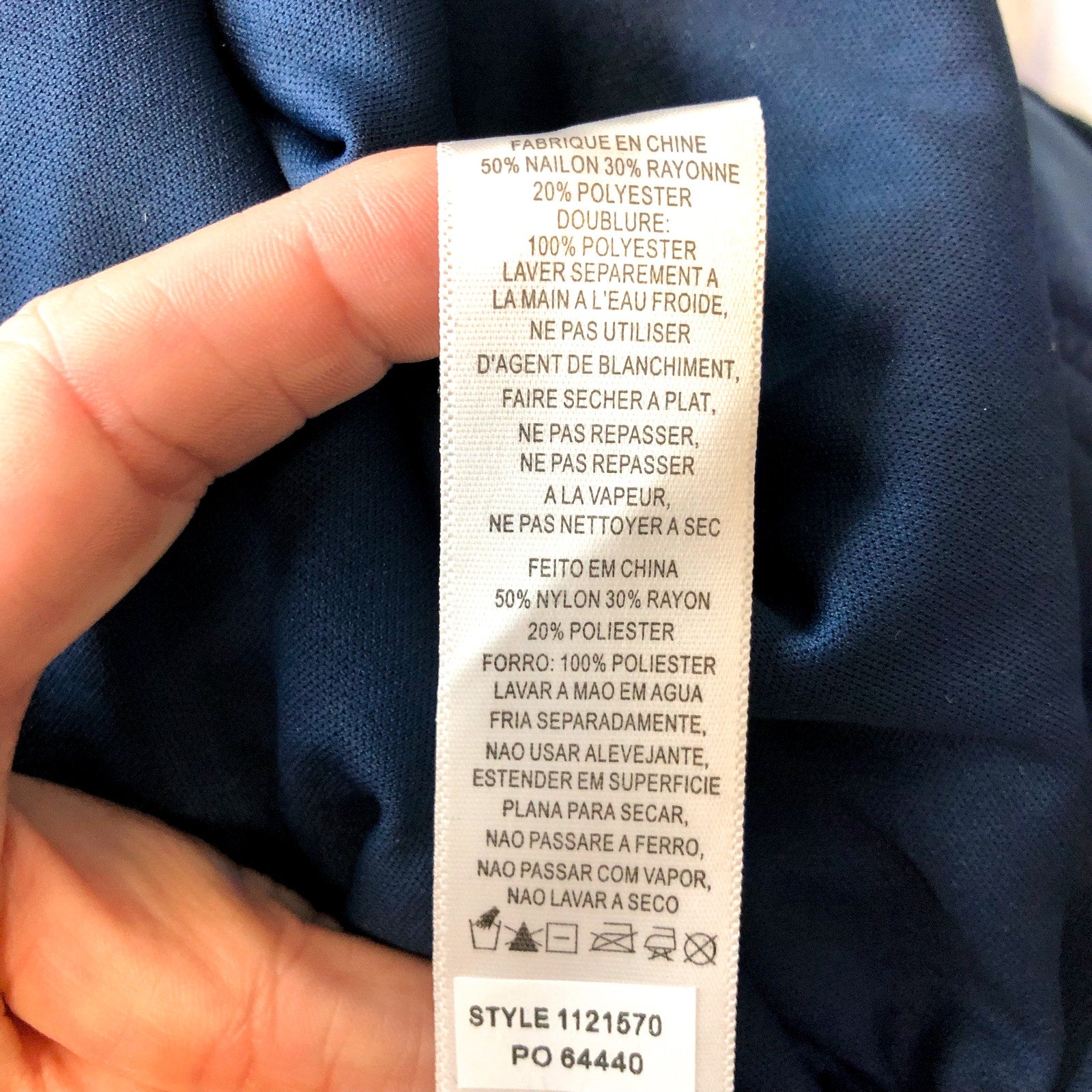 50% Nylon 30% Rayon 20% Polyester Lining: 100% Polyester