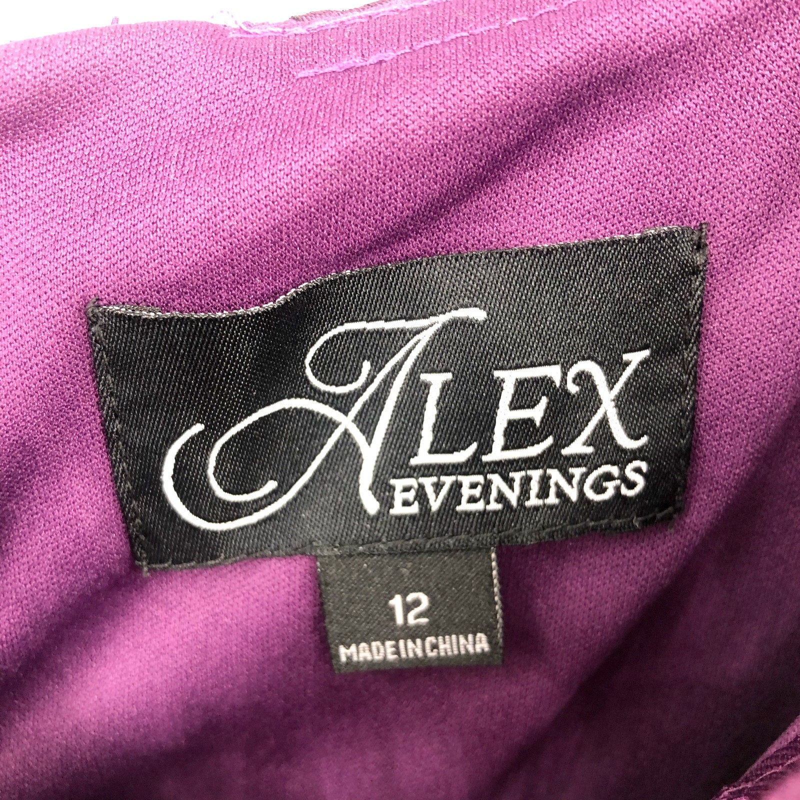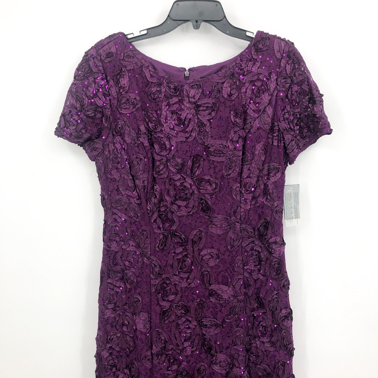 ALEX EVENINGS Women's Rosette Lace A-Line Gown Size 12 Purple Eggplant NWT