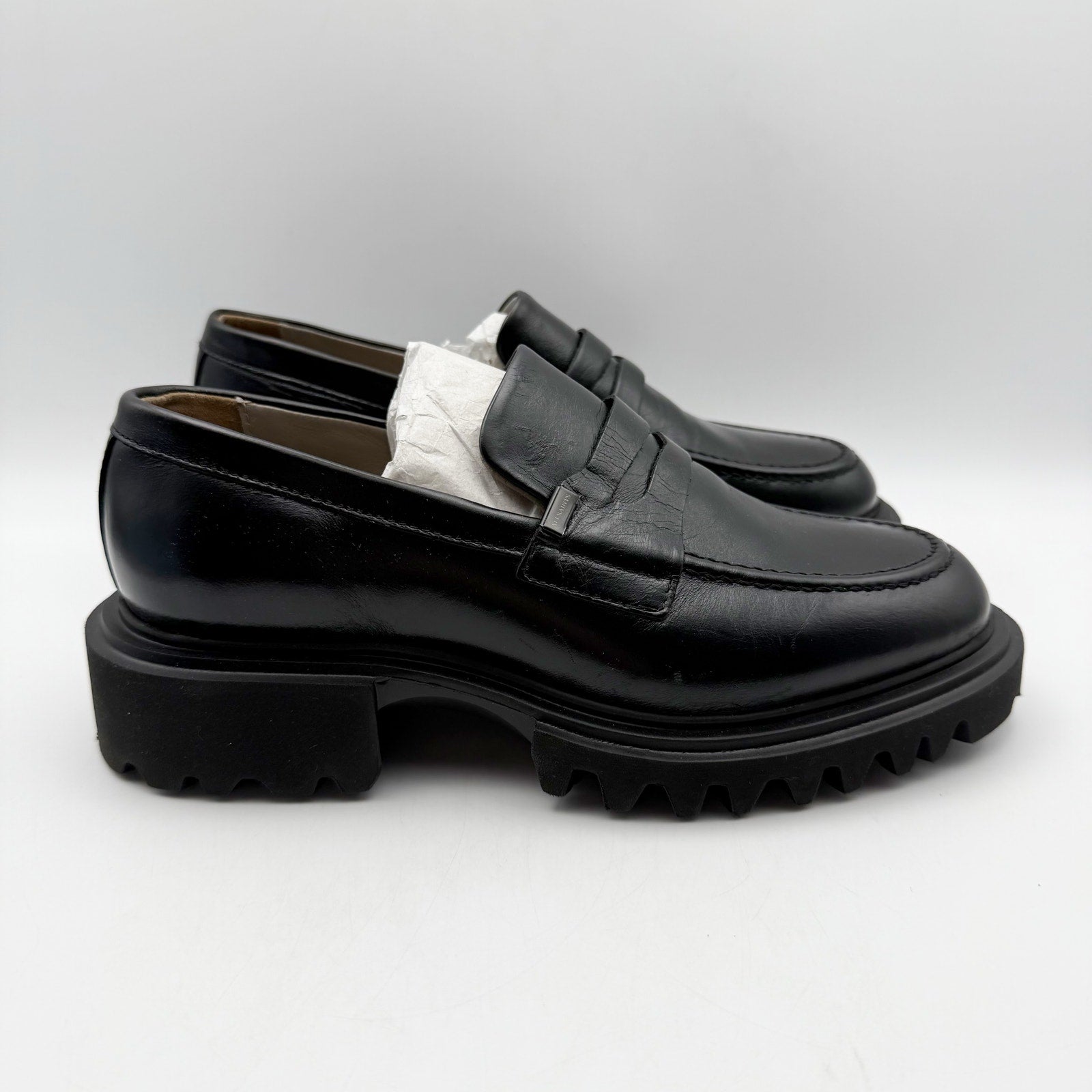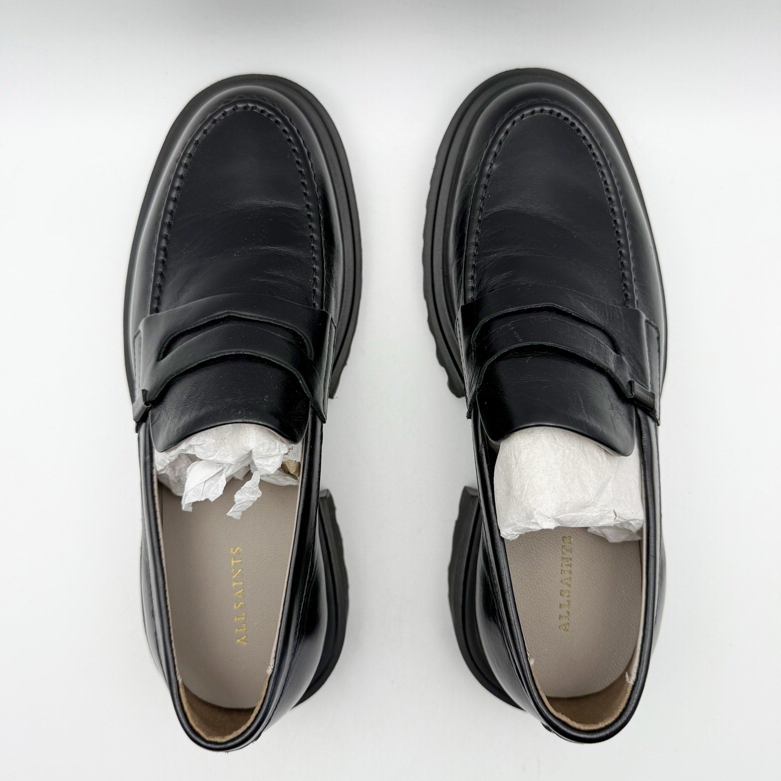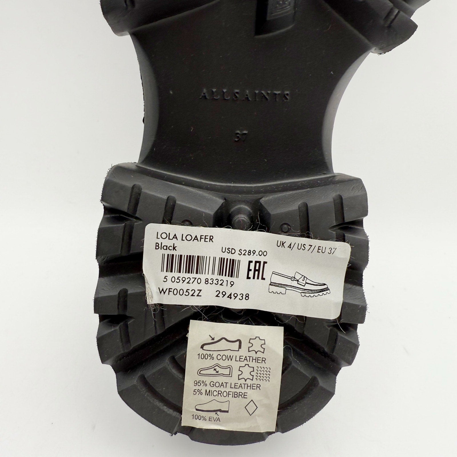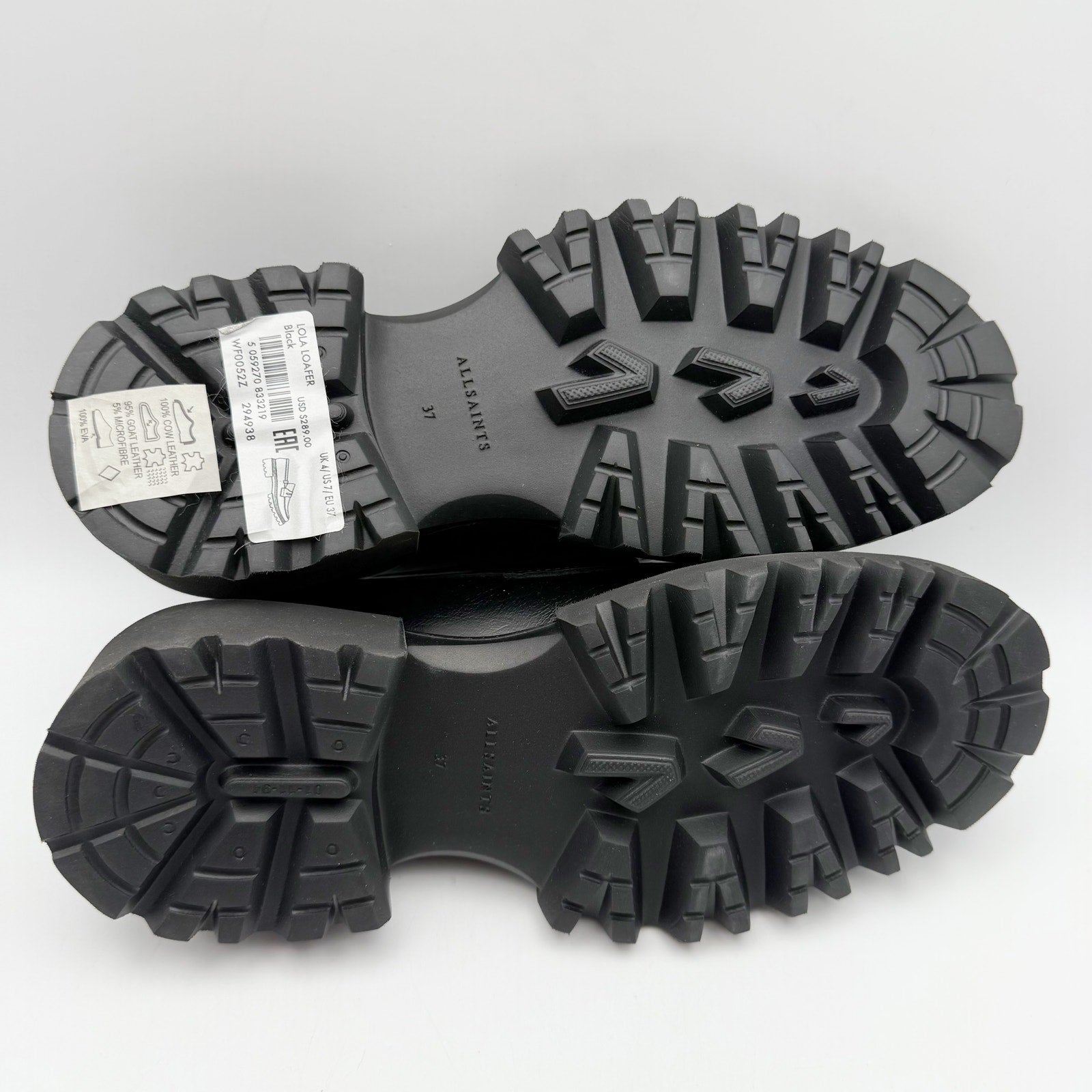Allsaints Womens Lola Loafers US 7 EU 37 Black Leather Chunky Lug Sole NWOB