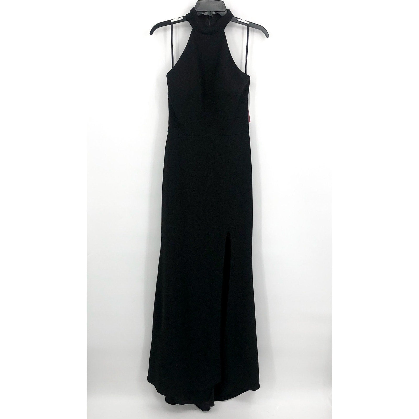 AQUA FORMAL Women's Halter Neck Slit Maxi Gown Size 4 Black Sleeveless NWT