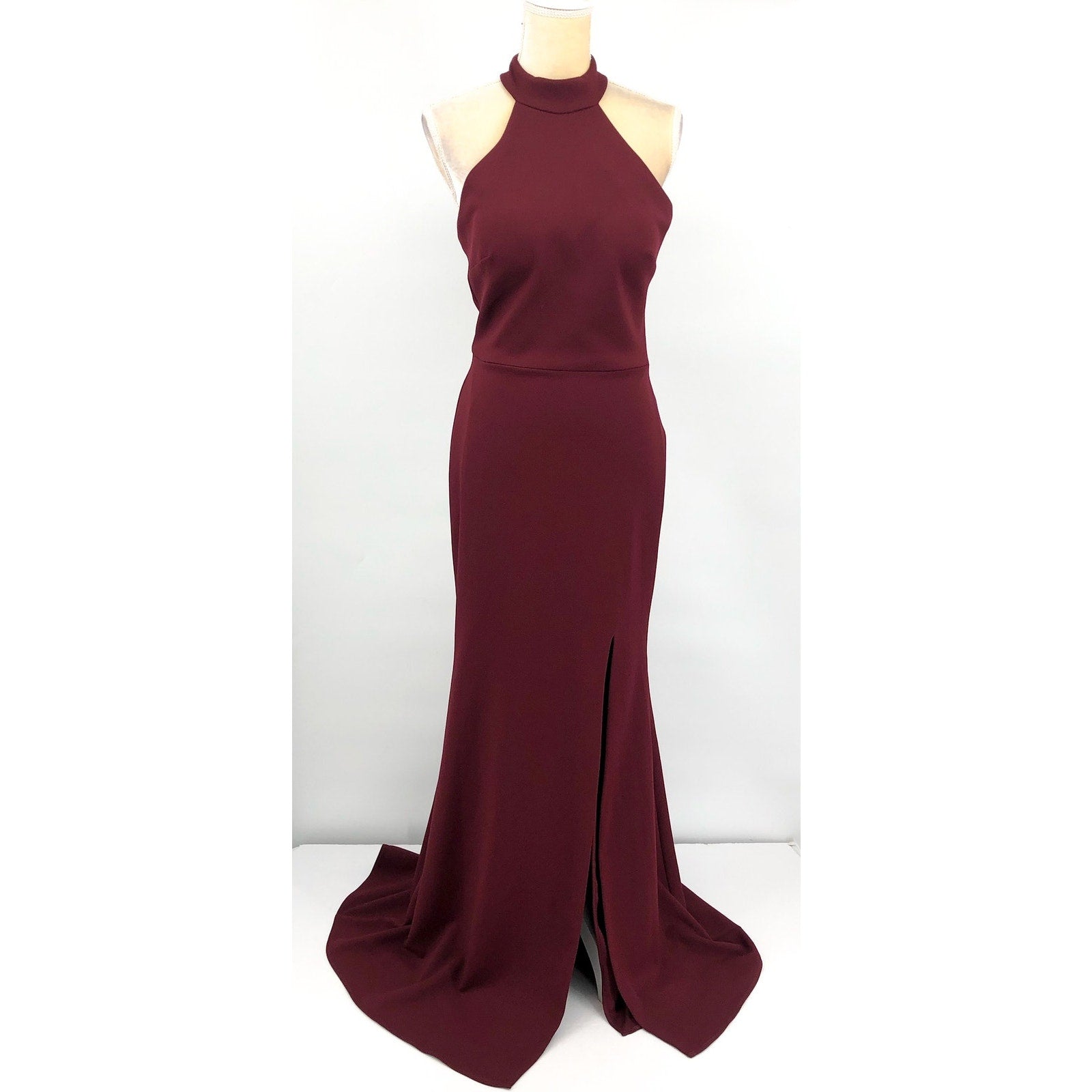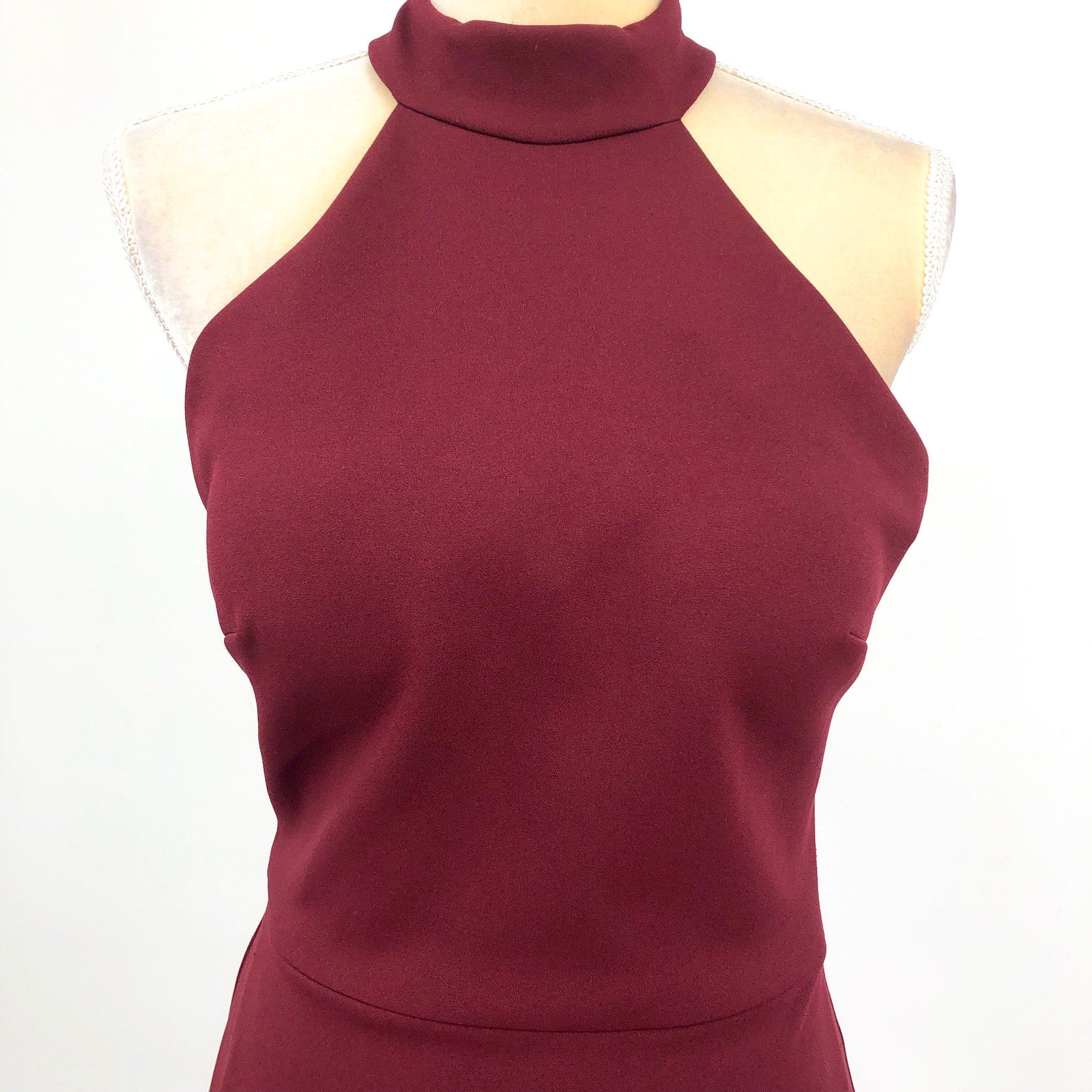 AQUA Women's Halter Neck Gown Size 4 Red Bordeaux Scuba Crepe Dress NWT