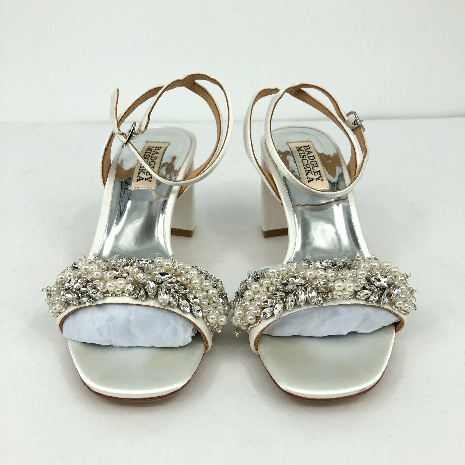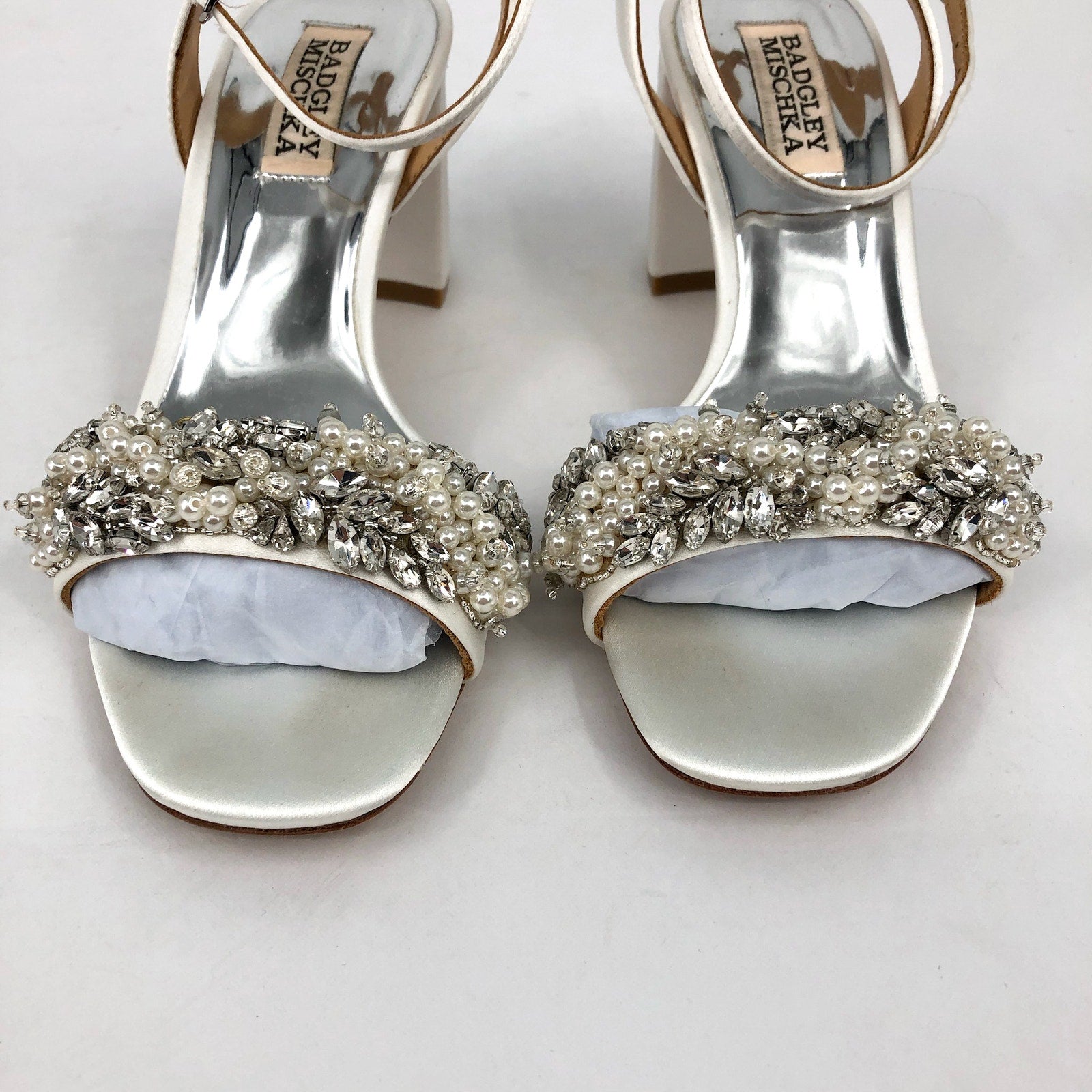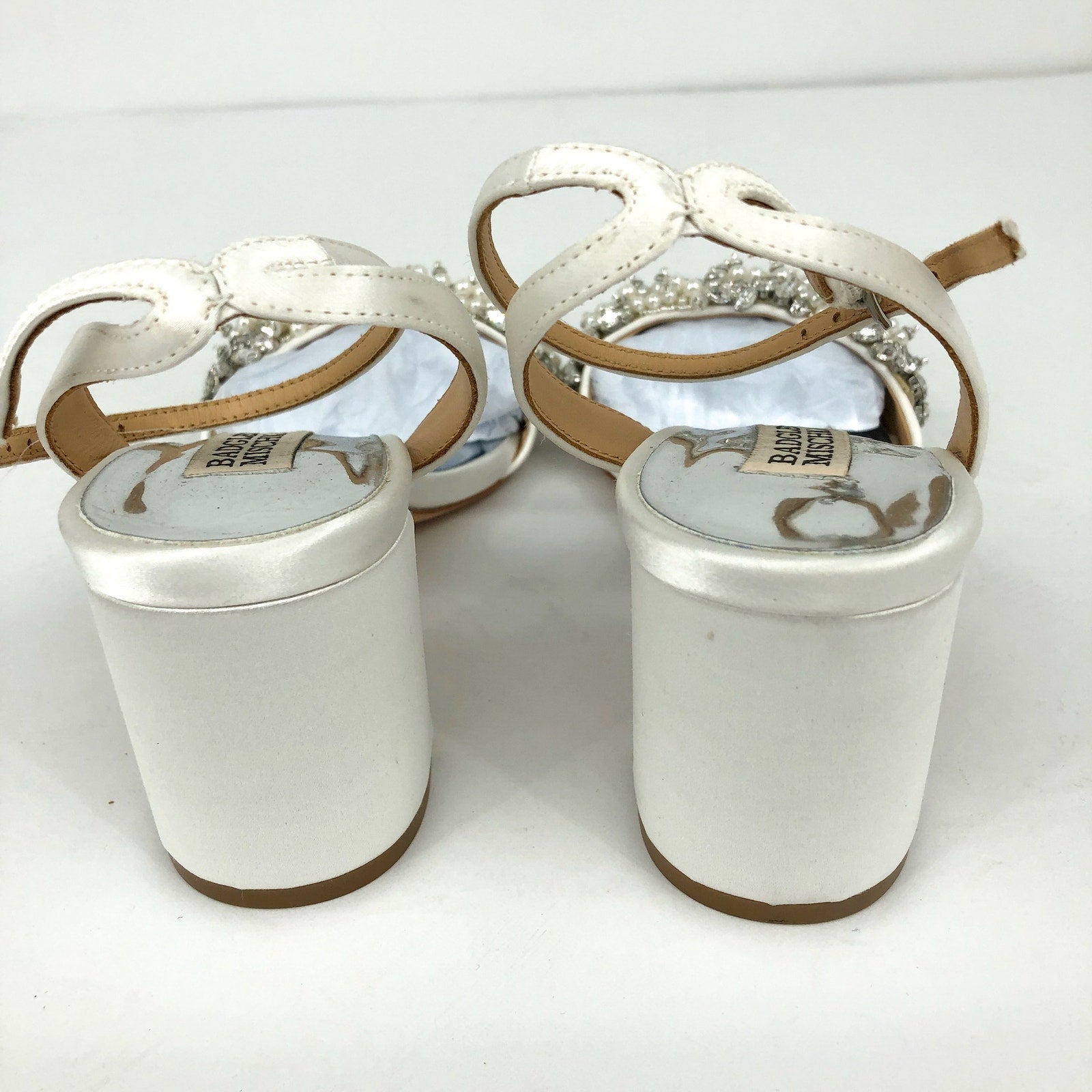 BADGLEY MISCHKA Clara Embellished Evening Sandals US 9.5 White Bridal Heel NIB