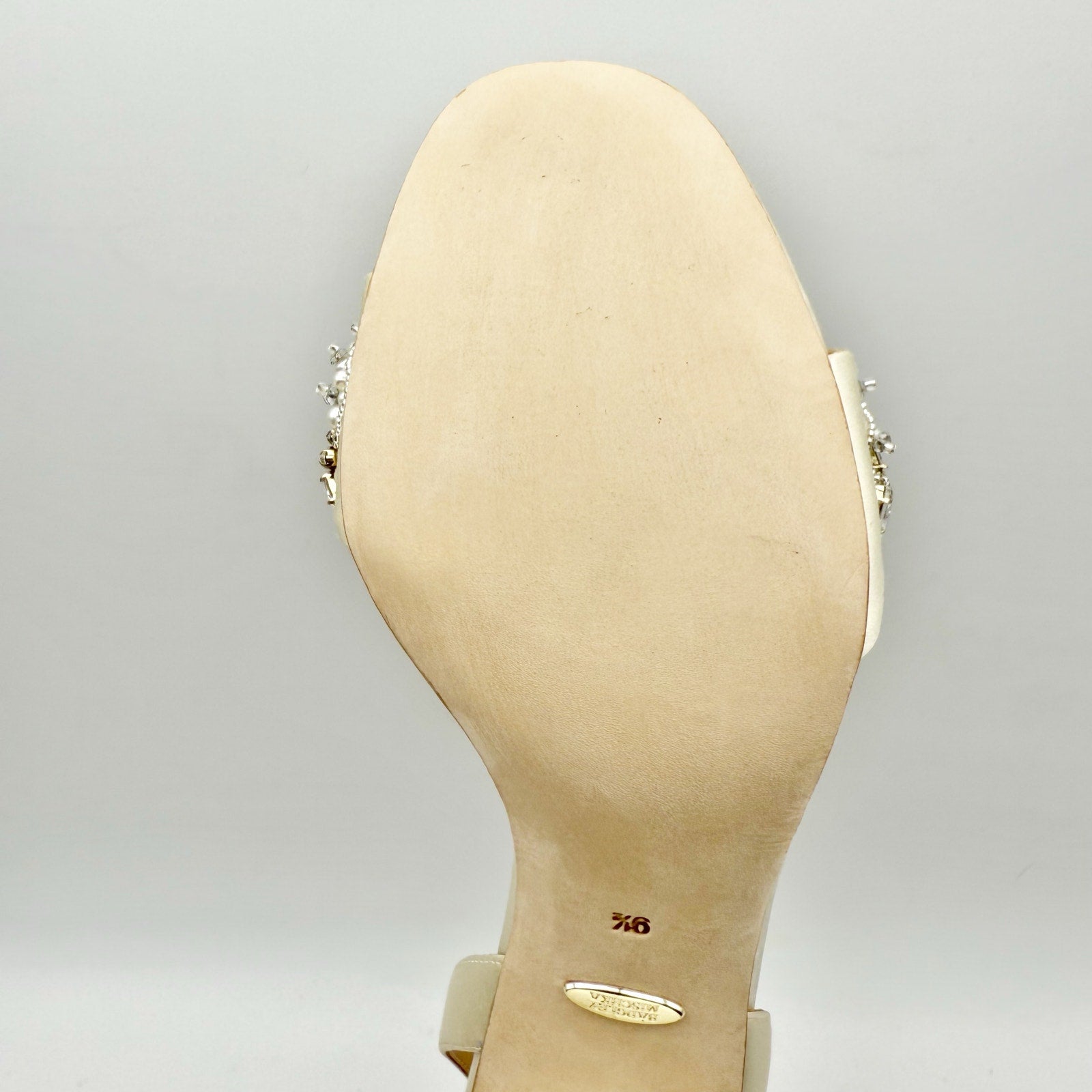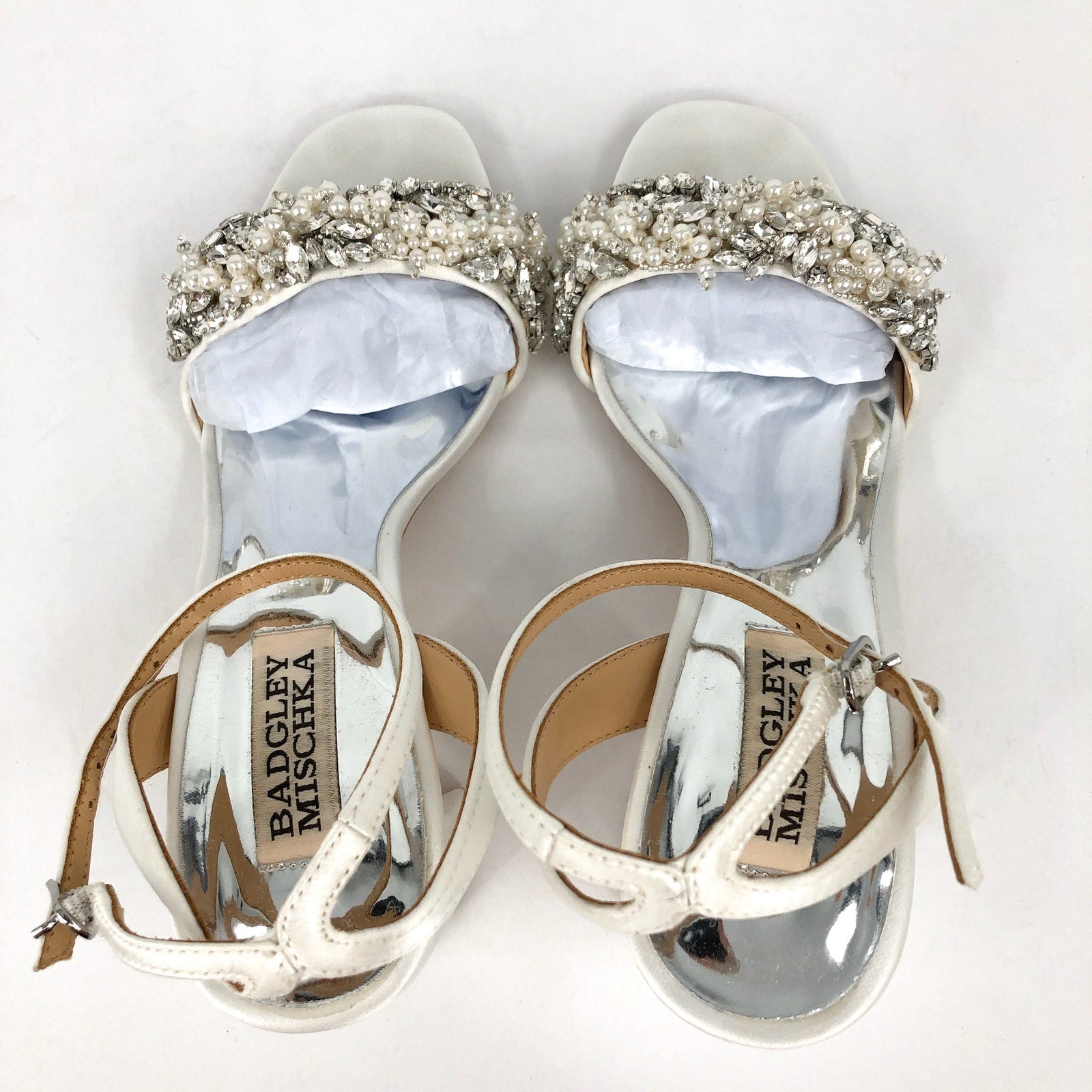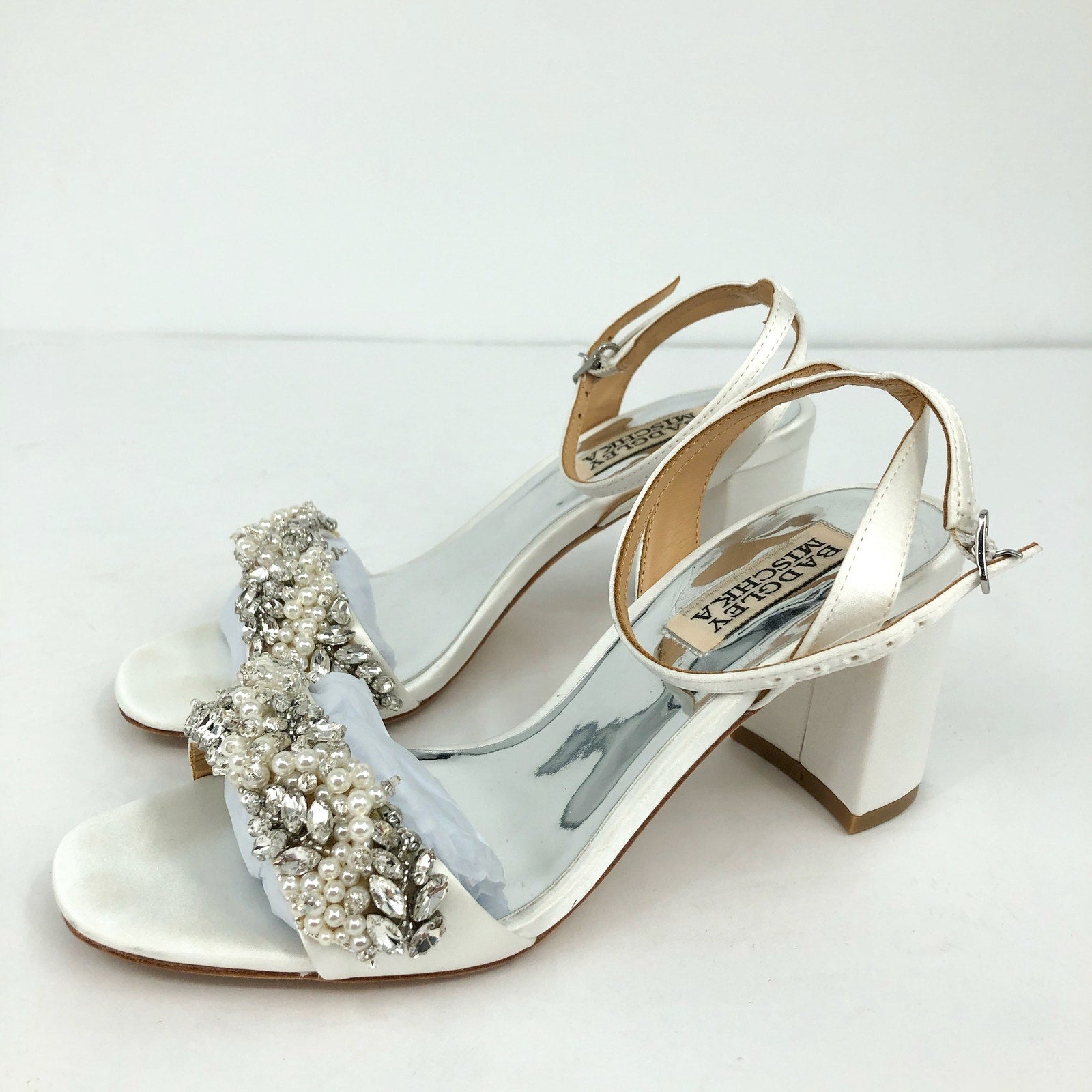 BADGLEY MISCHKA Clara Embellished Evening Sandals US 9.5 White Bridal Heel NIB