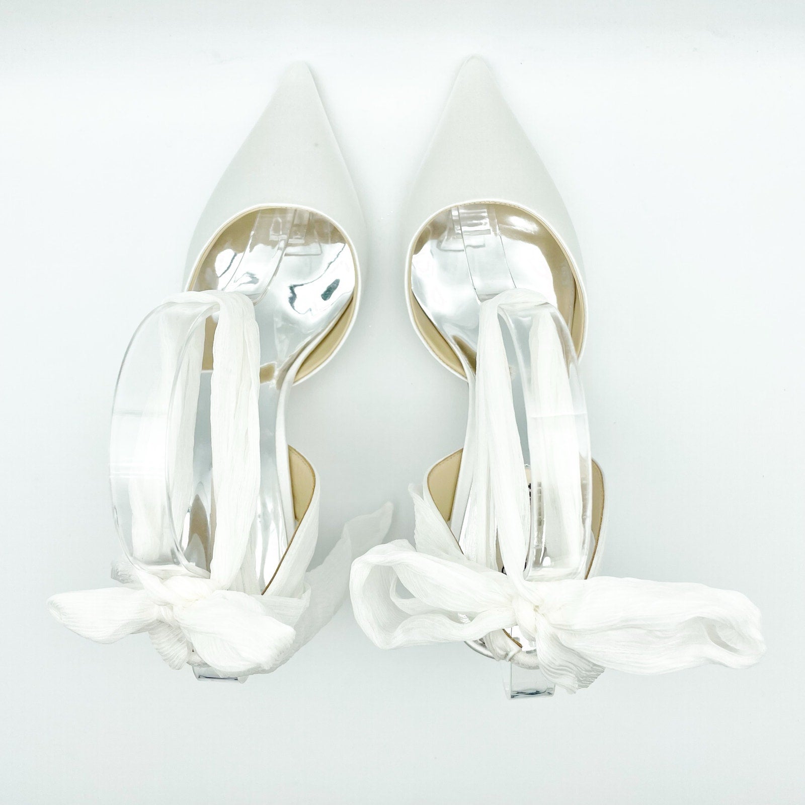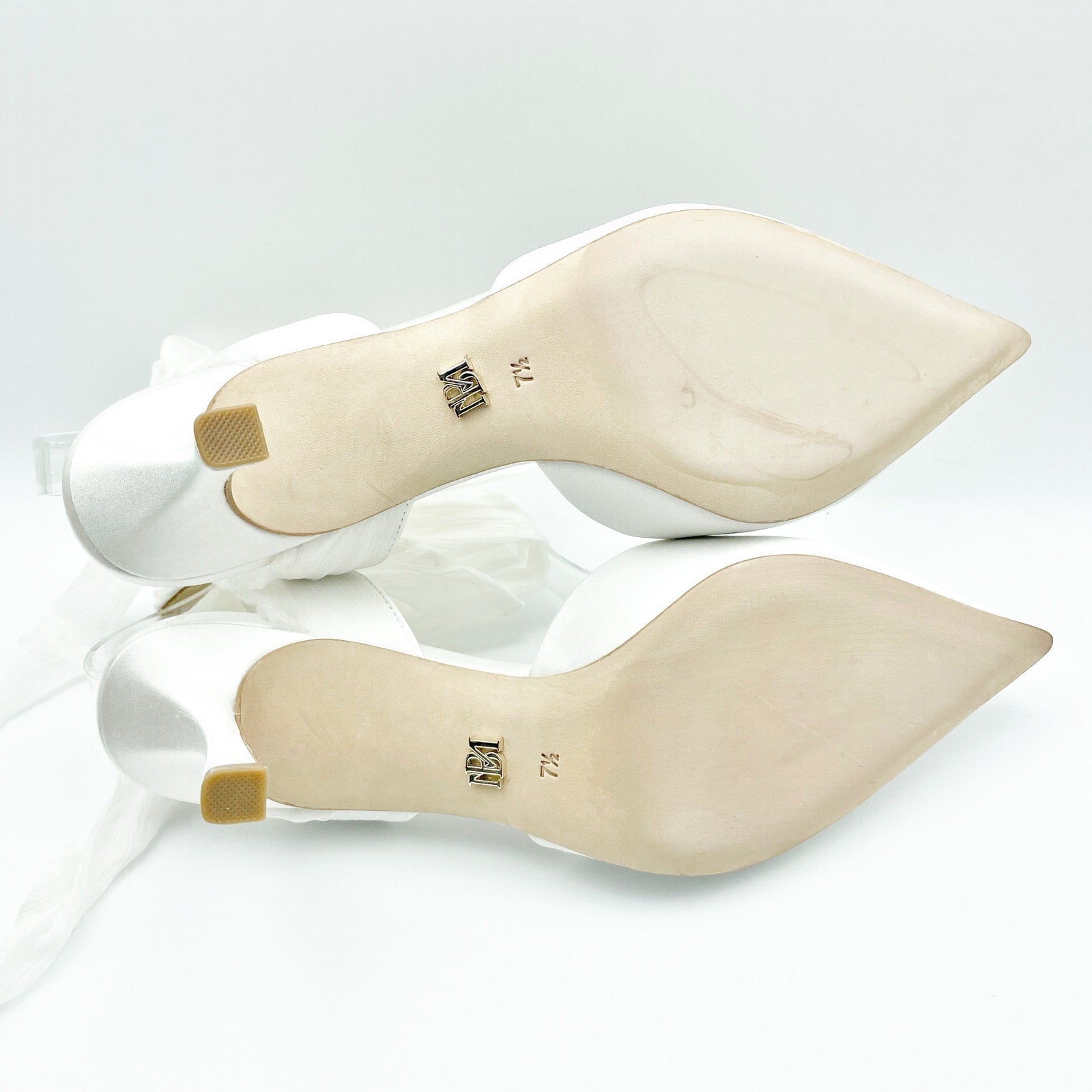 Badgley Mischka Womens Blaze Satin Bow Stiletto Heels US 7.5 M EU 38 White NWOB