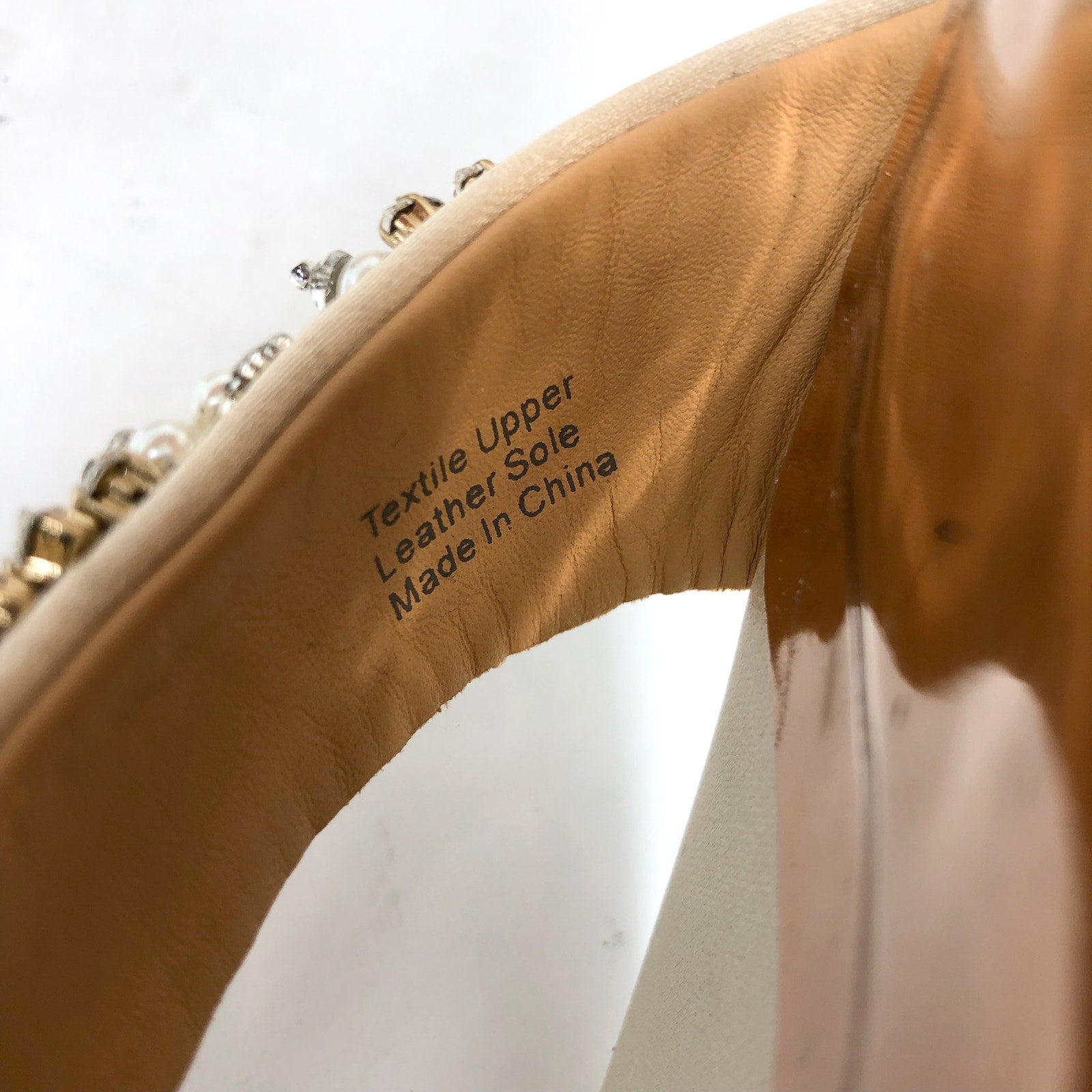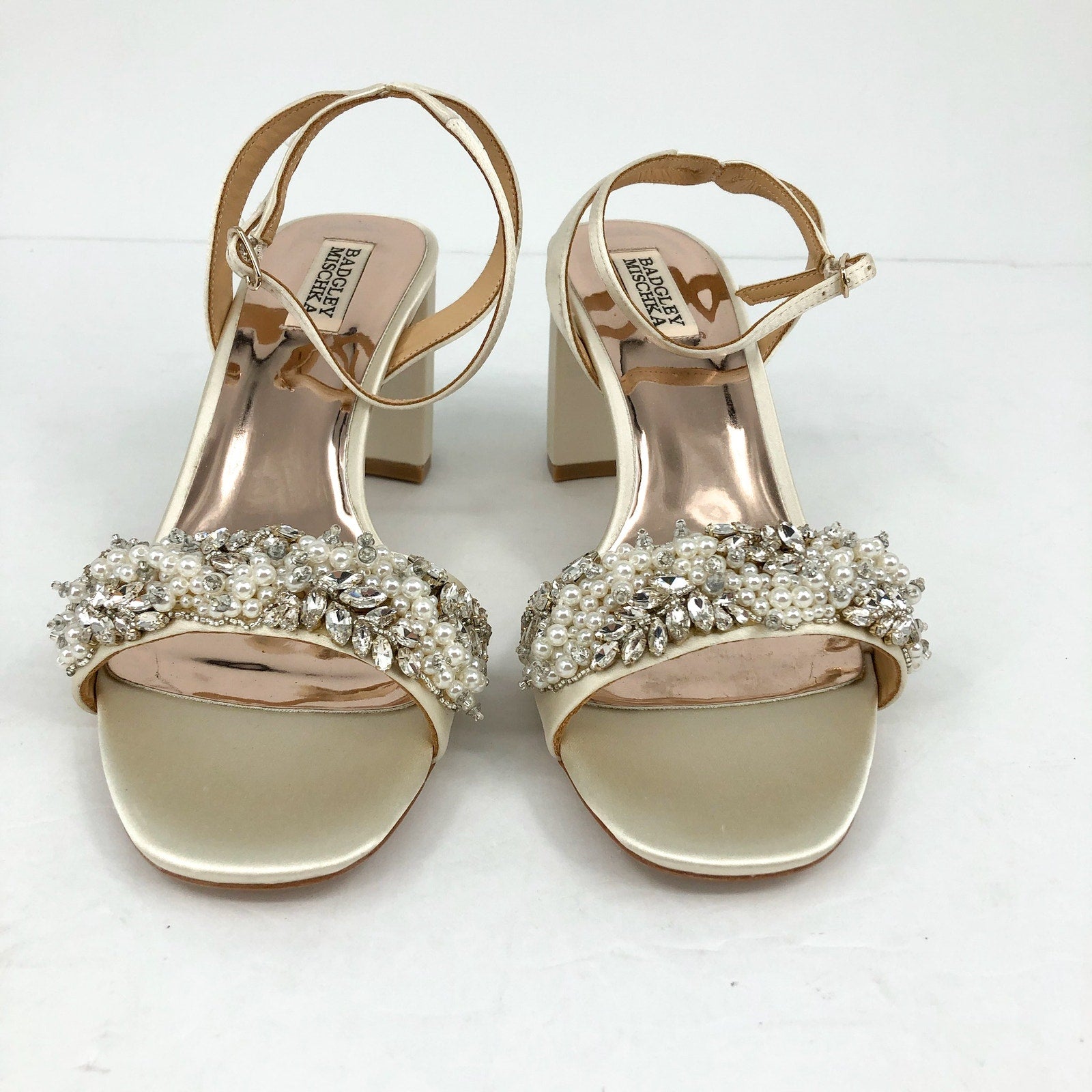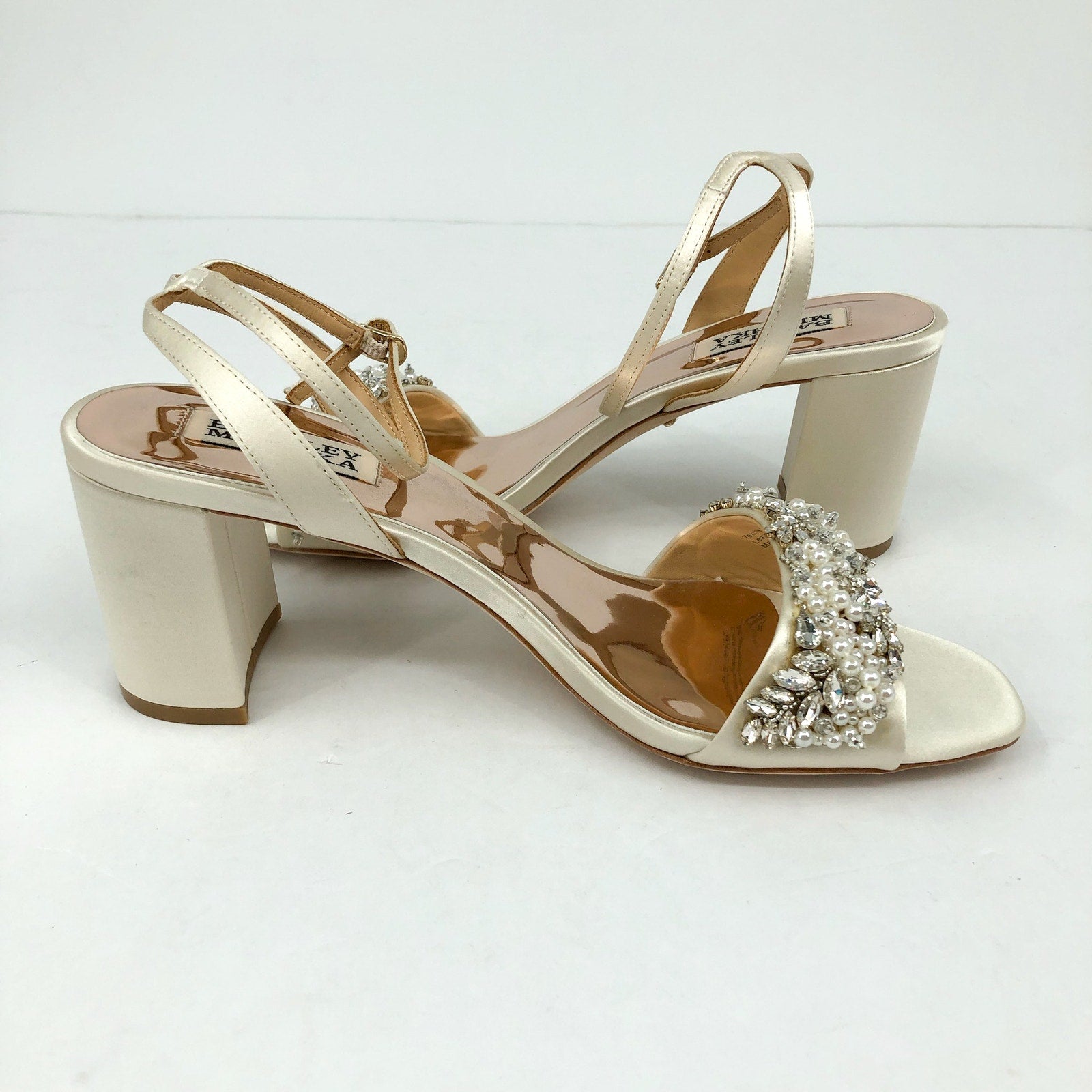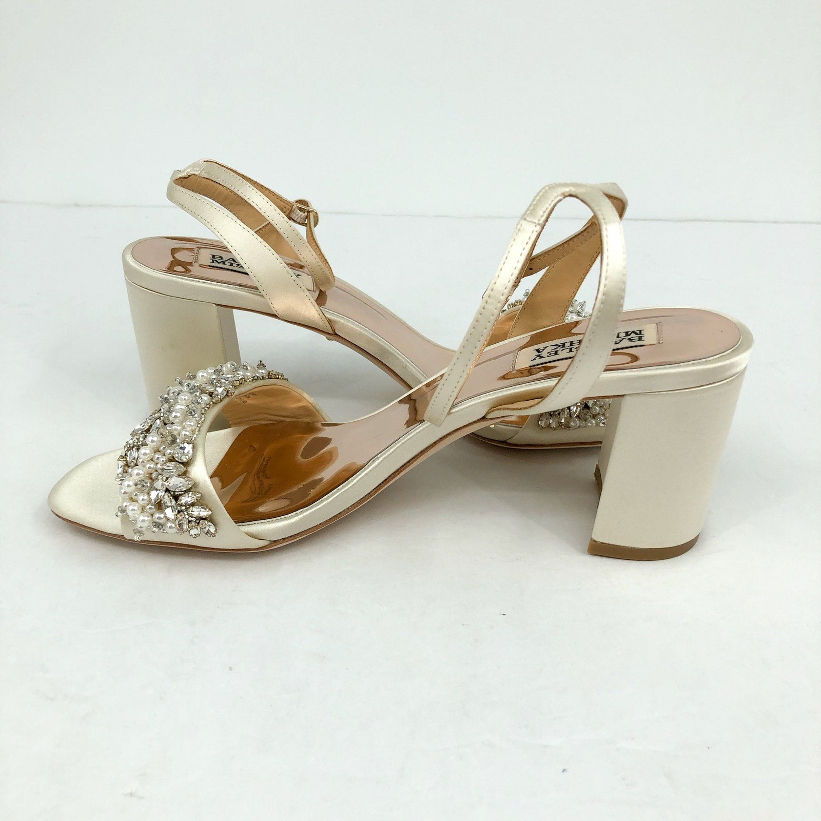 Badgley Mischka Womens Marsha Satin Heels US 9 Ivory Sandals Rhinestone NWOB