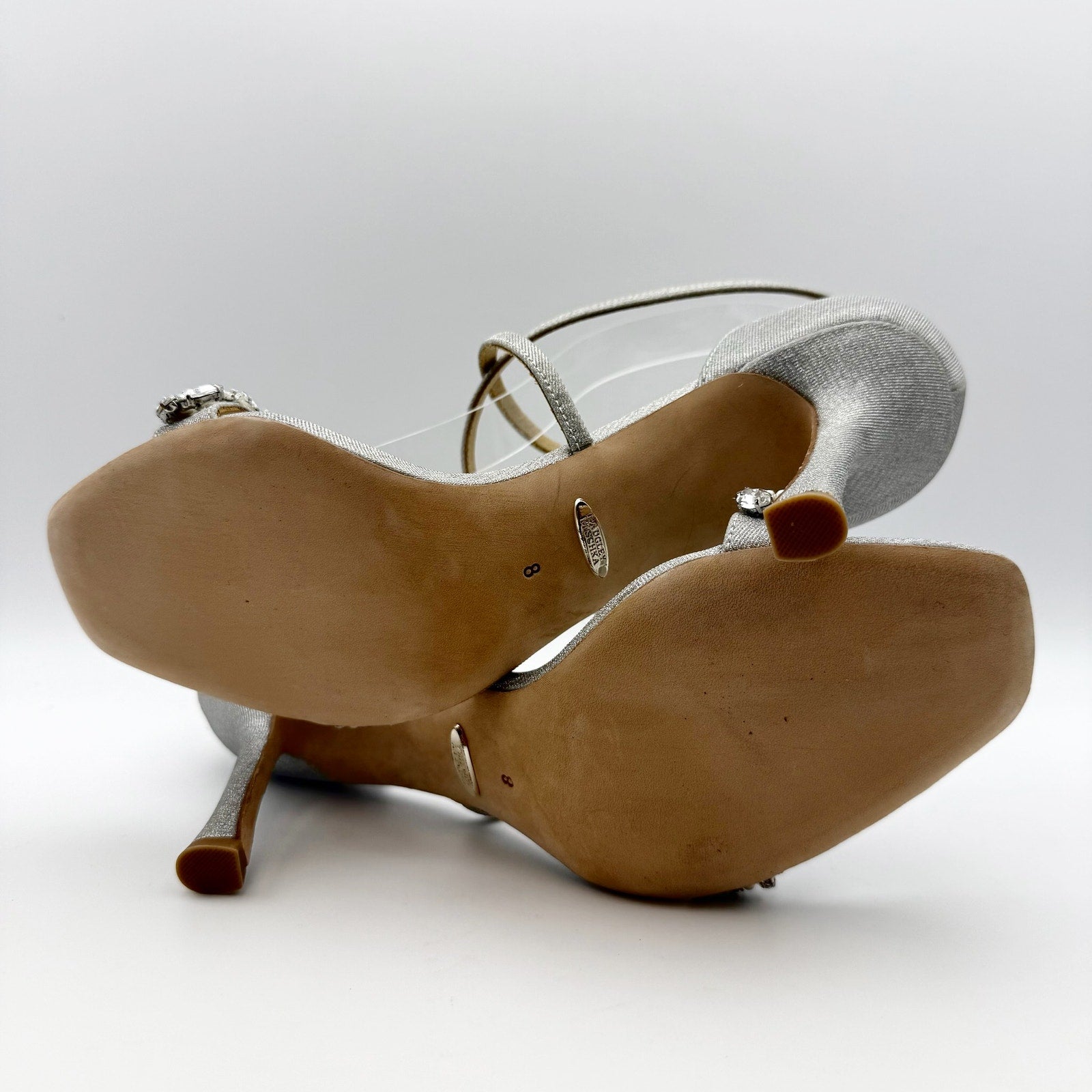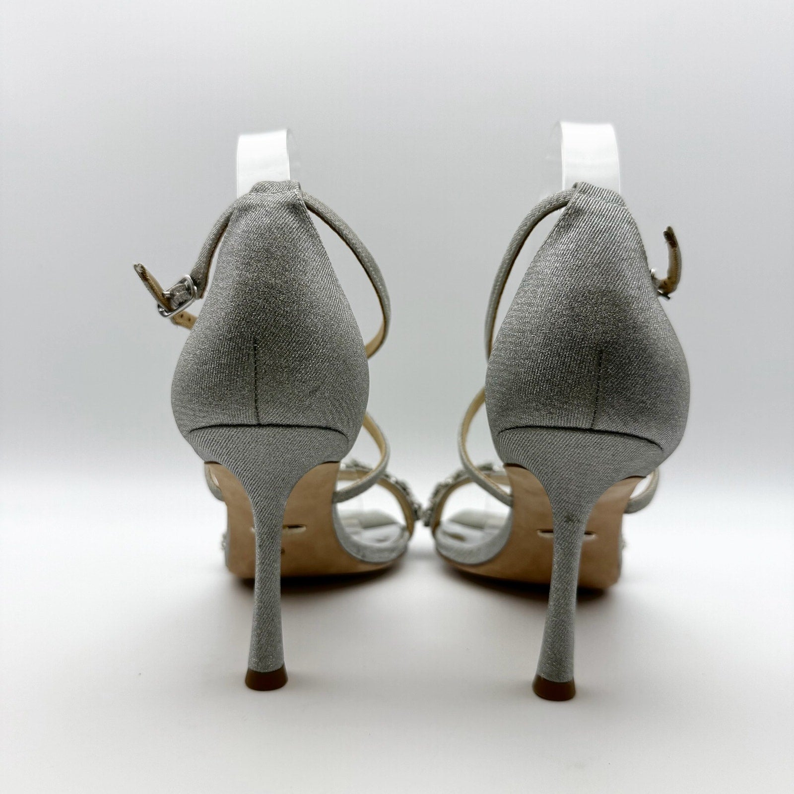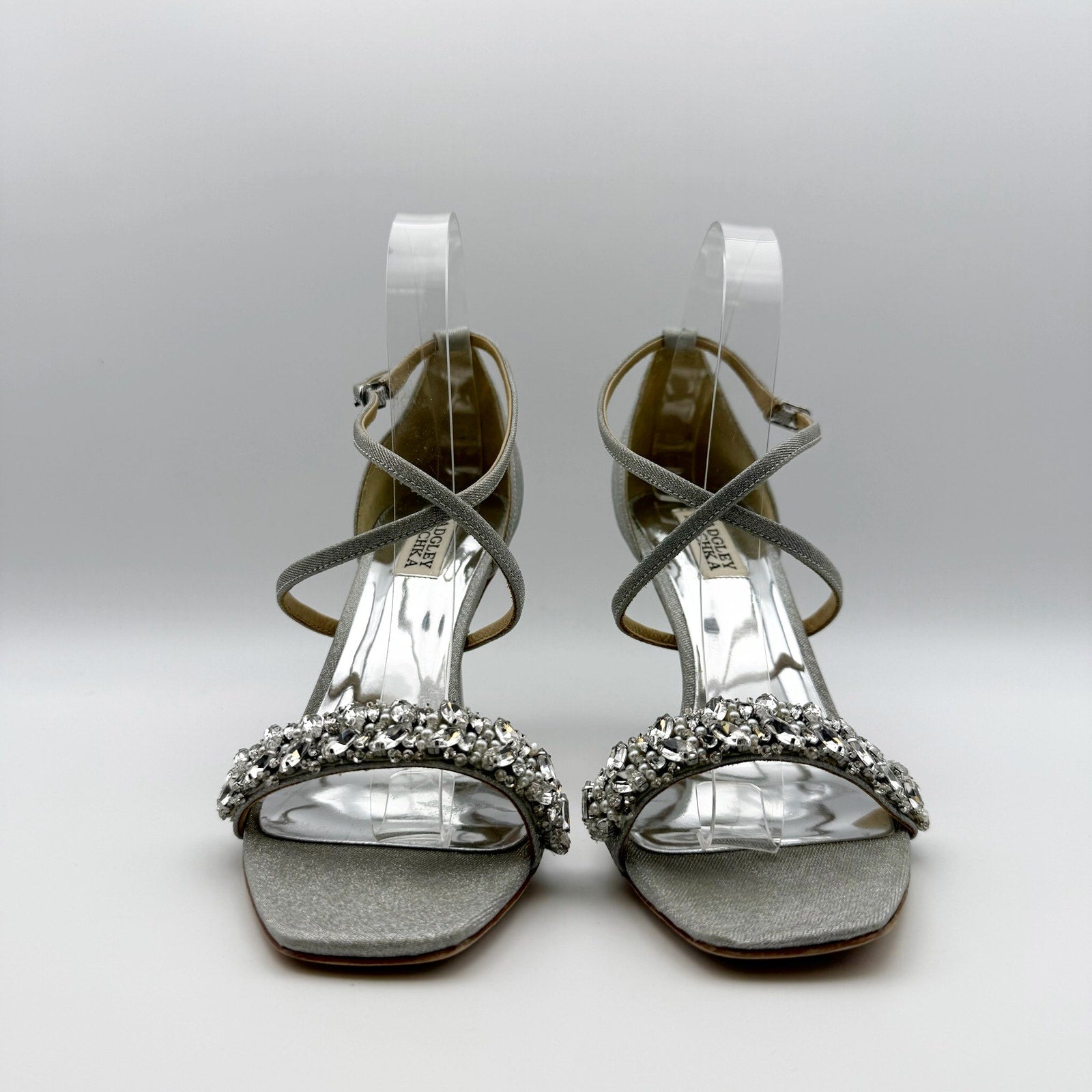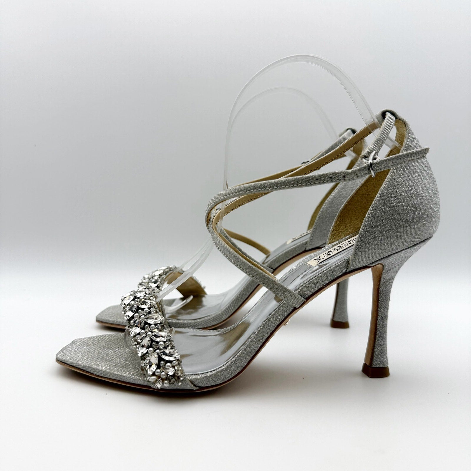 Badgley Mischka Womens Nala Glitter Strappy Heels US 8 Silver Satin NWOB