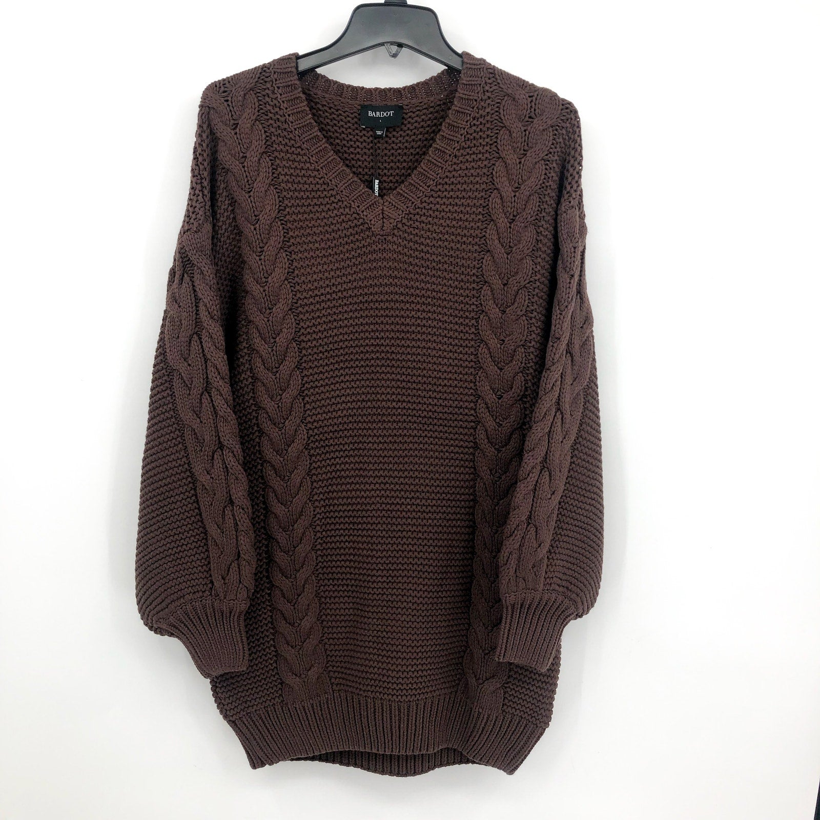 BARDOT Bell Knit Sweater Dress US 8 Large Brown Chocolate Long Sleeves NWT