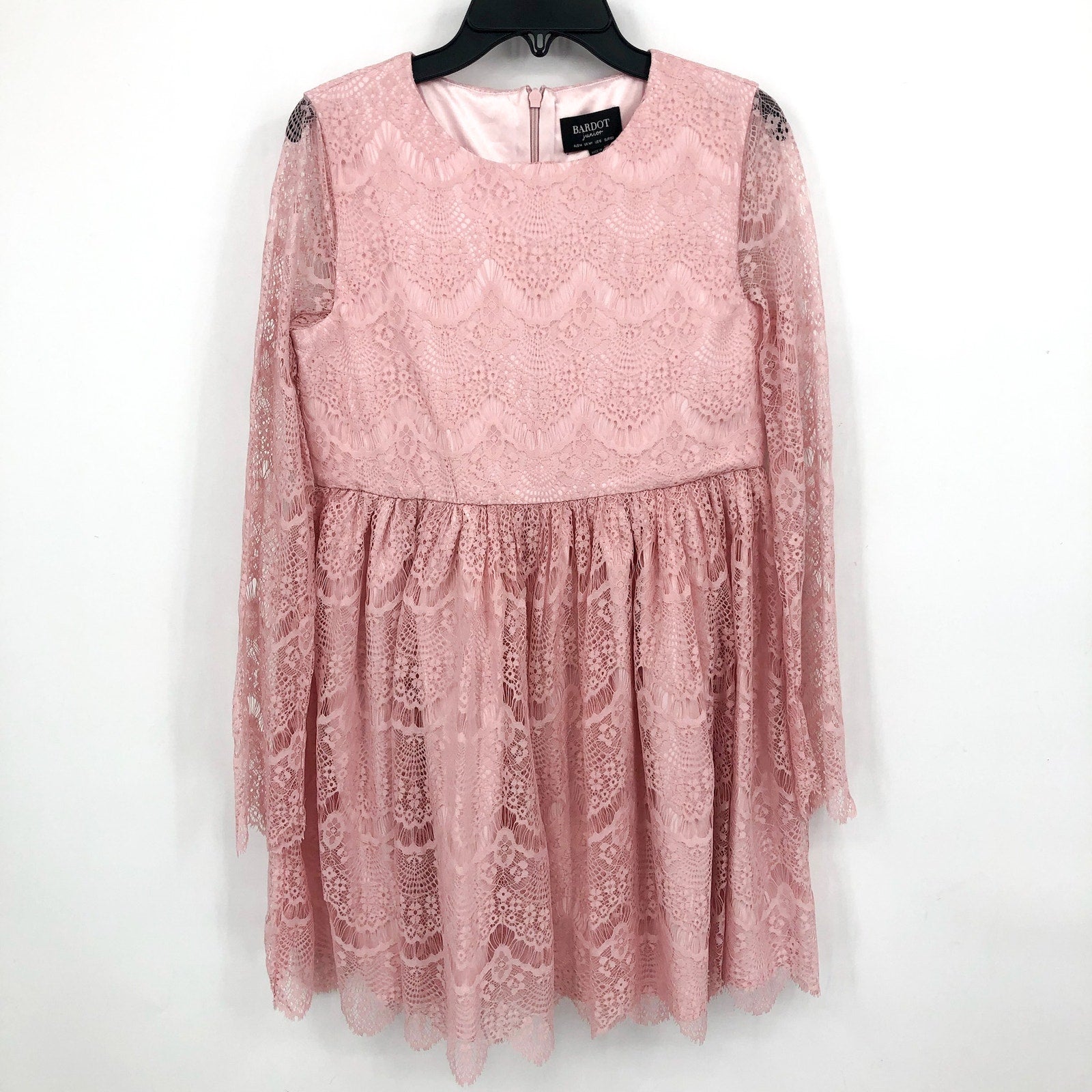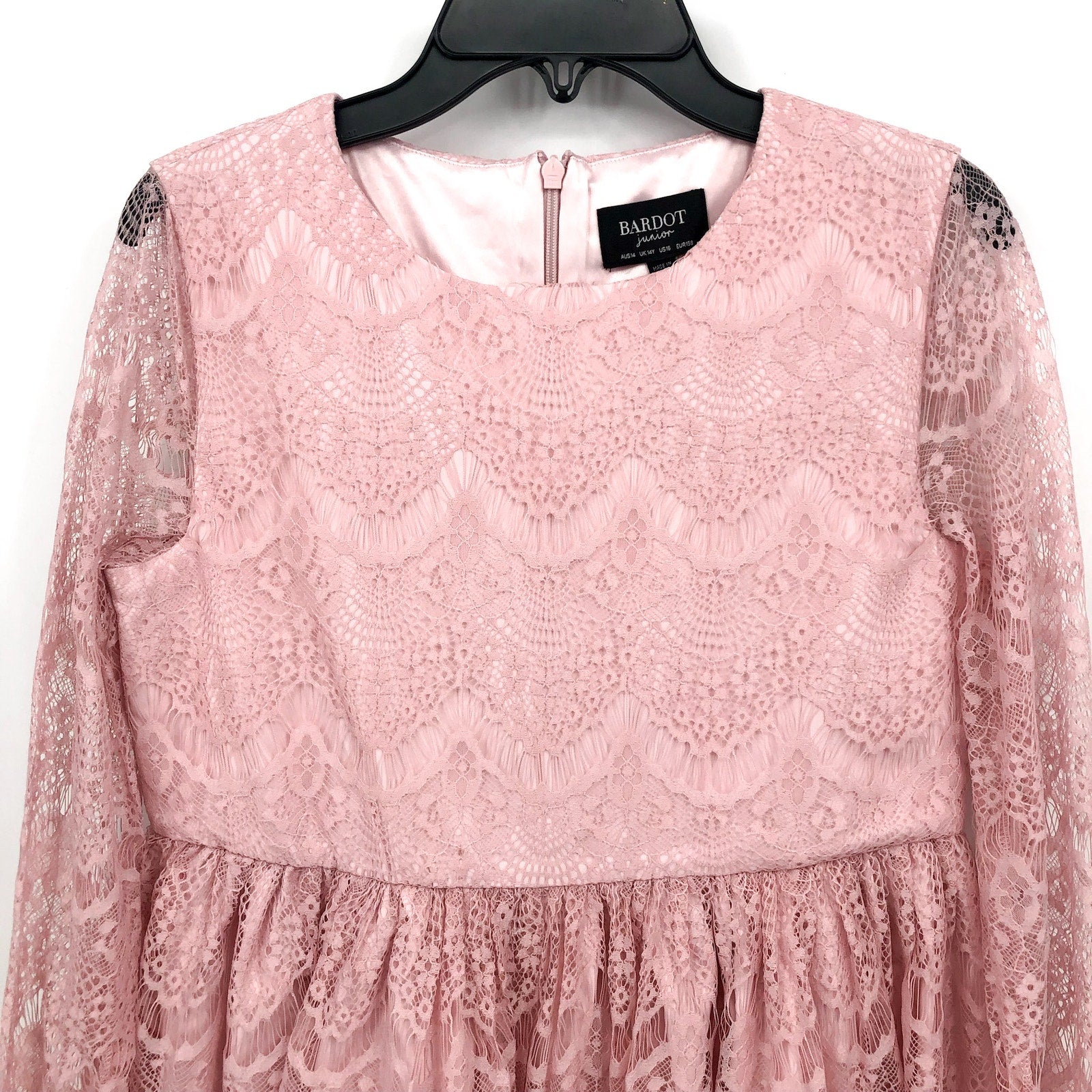 BARDOT JUNIOR Girl Gertrude Lace Dress Size 16 Pink Potpourri Long Sleeve NWT