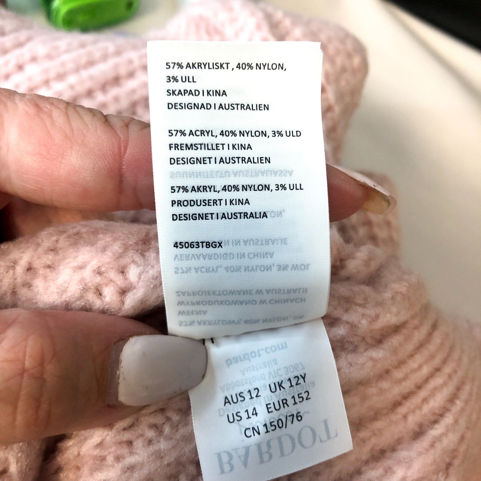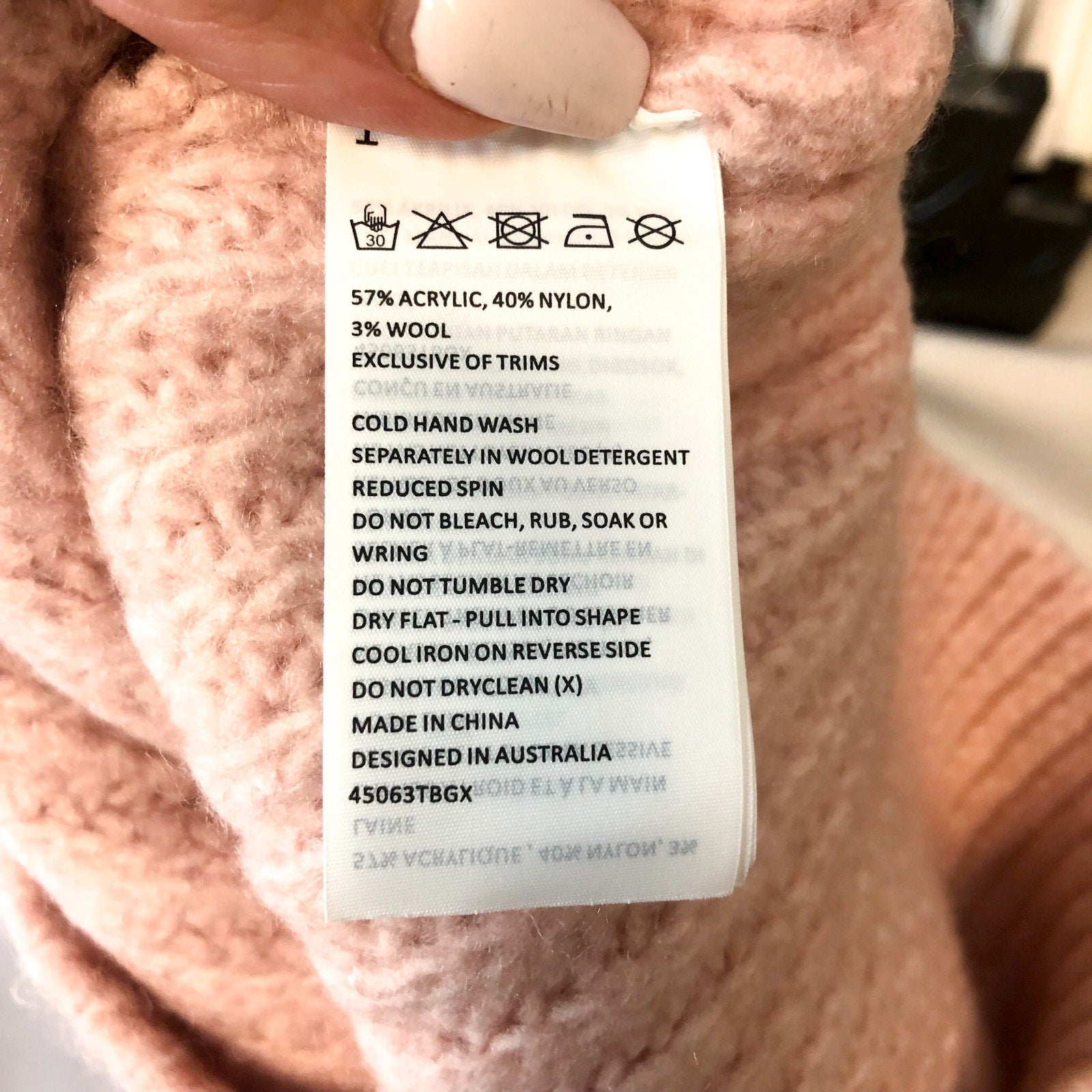 57% Acrylic, 40% Nylon, 3% Wool
