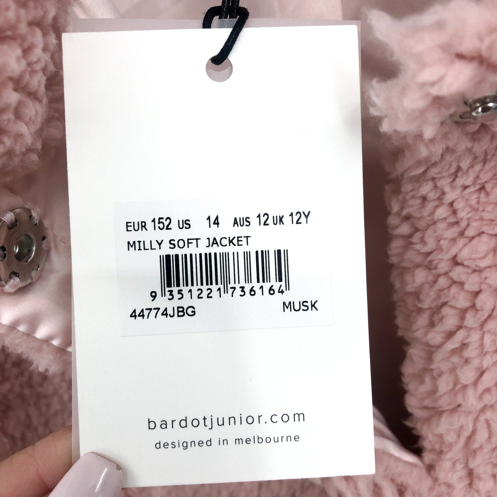 BARDOT JUNIOR Girl's Milly Soft Teddy Jacket XL US 14 Pink Musk Faux Fur NWT