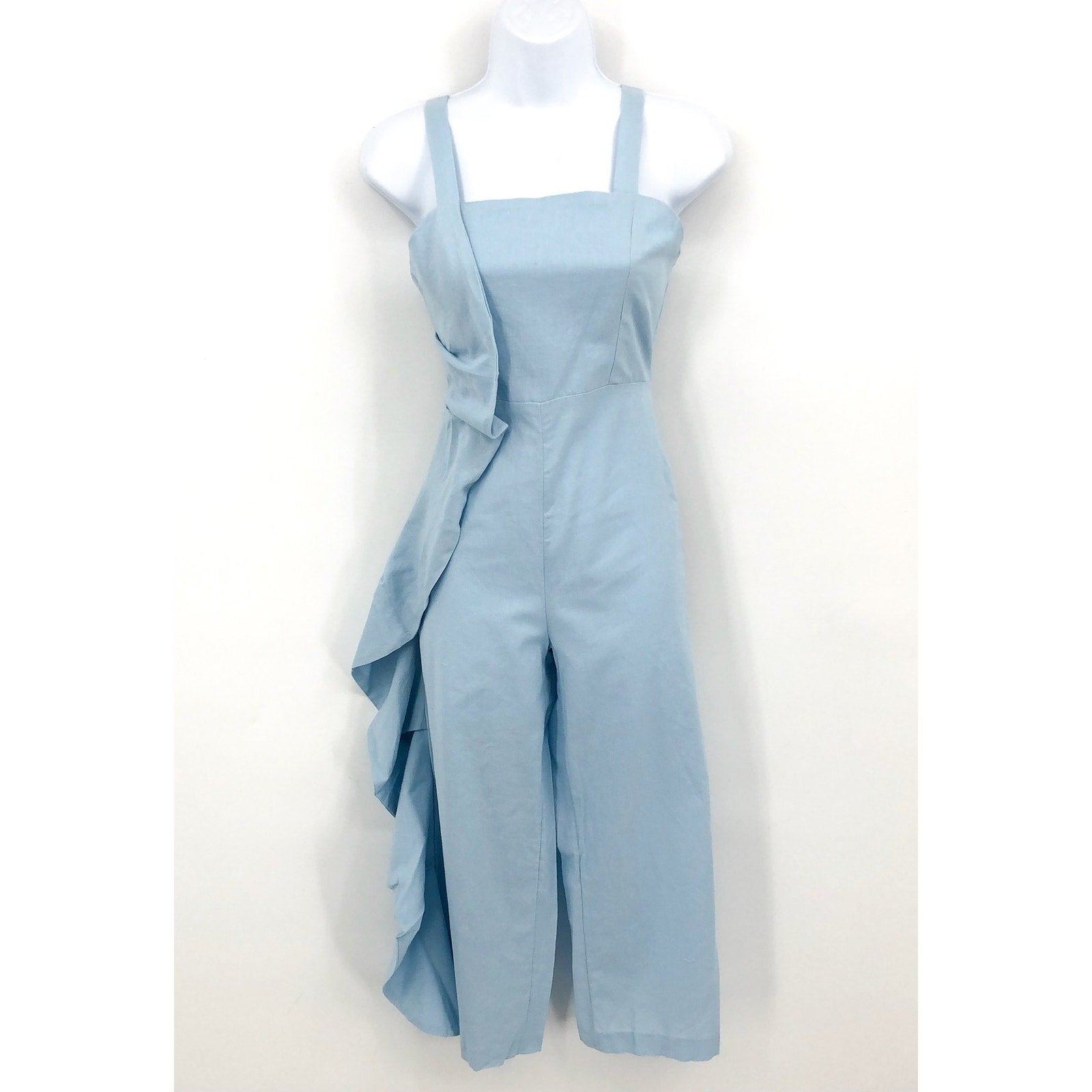 BARDOT JUNIOR Girl's Nelly Ruffle Jumpsuits 14 Sky Blue Square Neck NWT