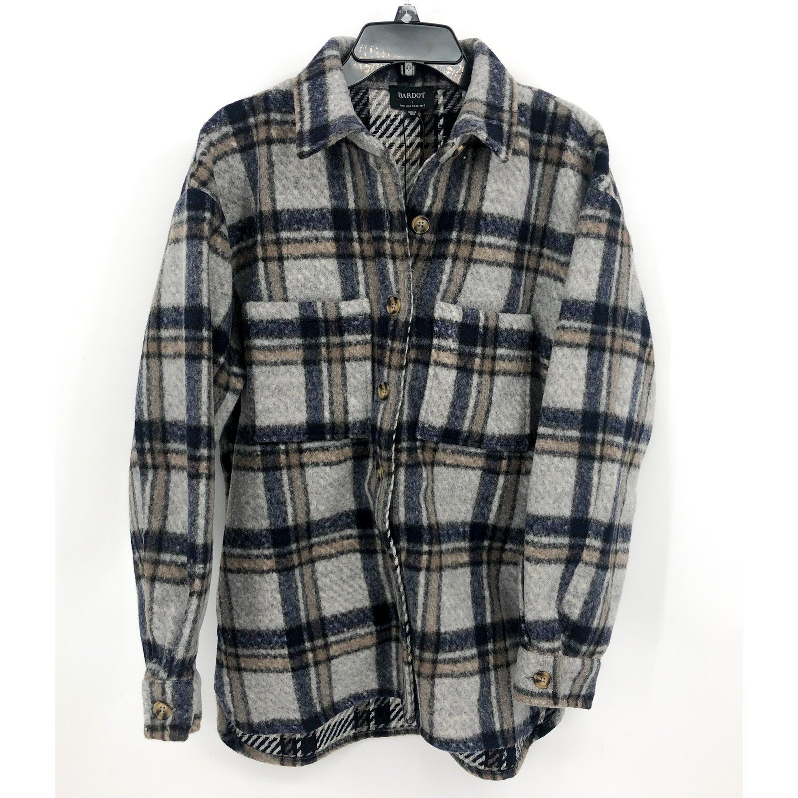 BARDOT Women Checked Flannel Shirt Jacket Small Blue Check NWT