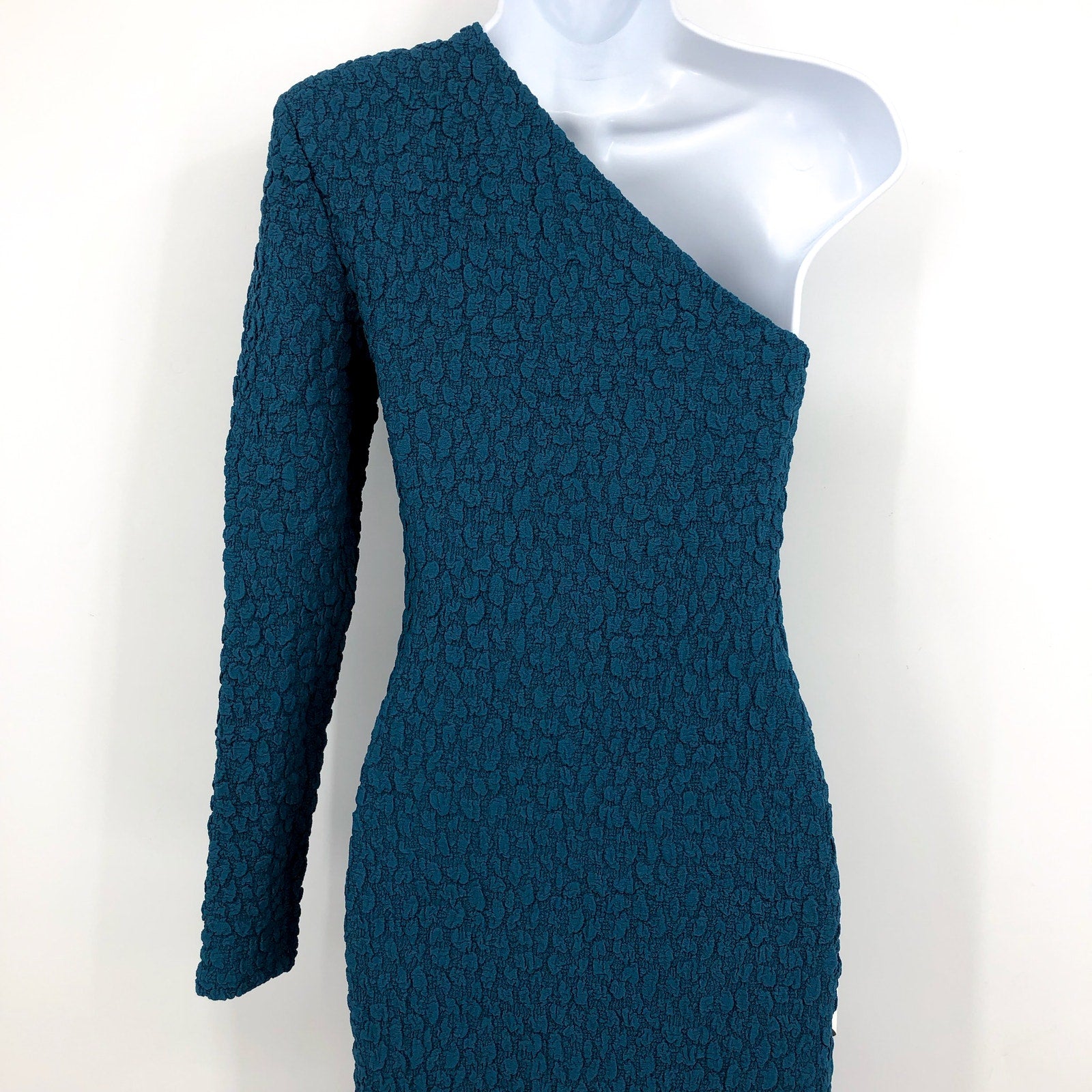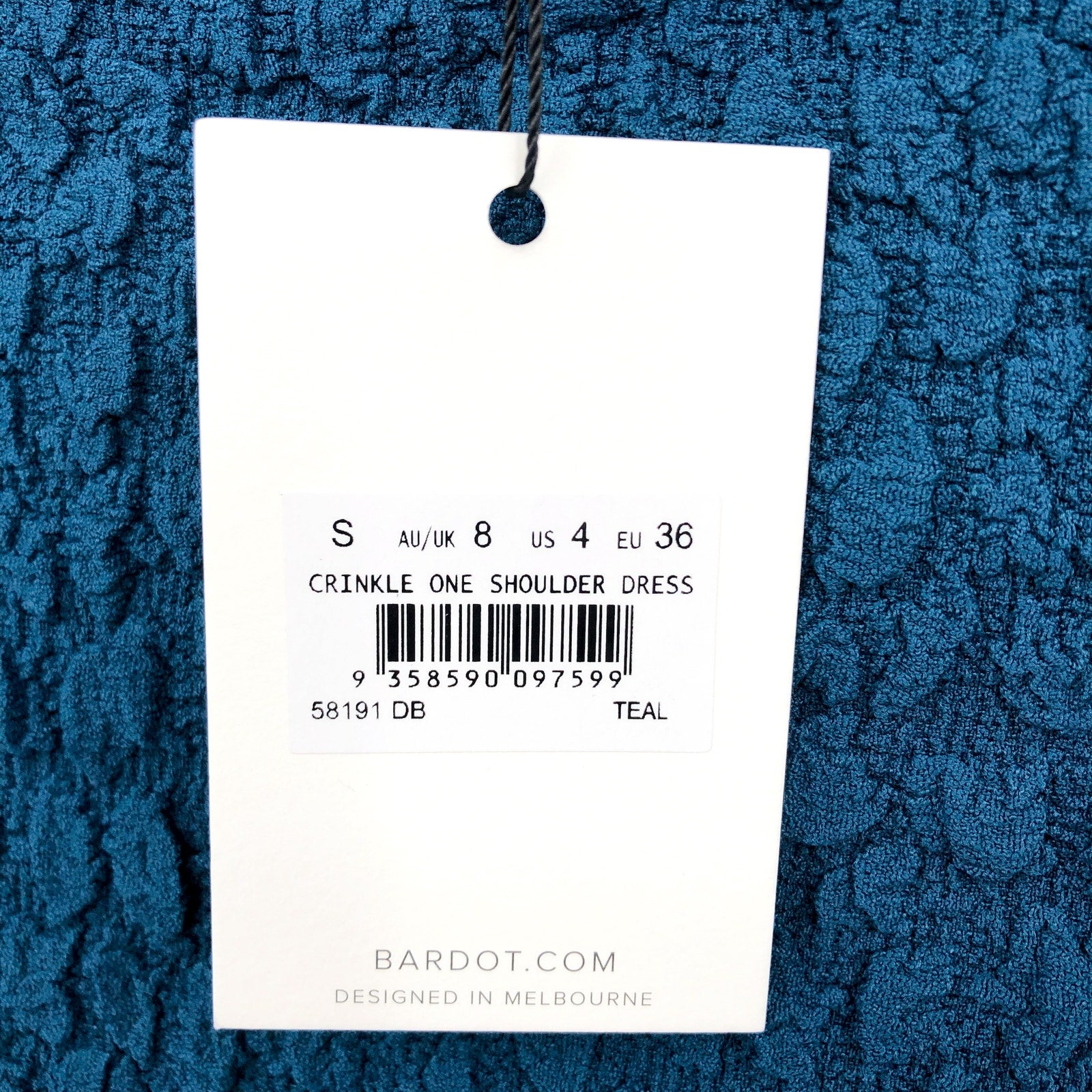 BARDOT Women's Crinkle One Shoulder Long Dress US 4 Teal Blue Long Sleeve NWT