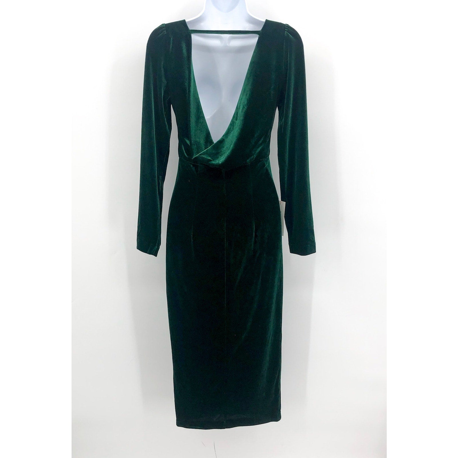BARDOT Women's Kalani Cowl Back Velvet Dress US 4 Dark Green Long Sleeve NWT
