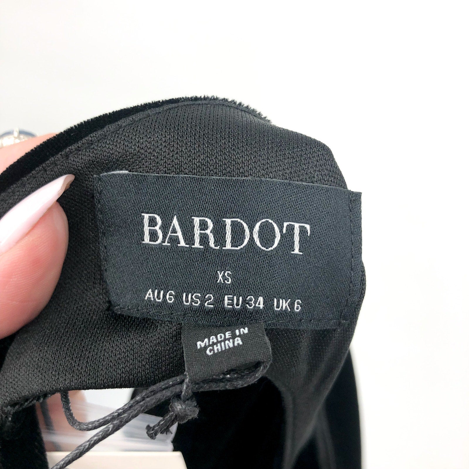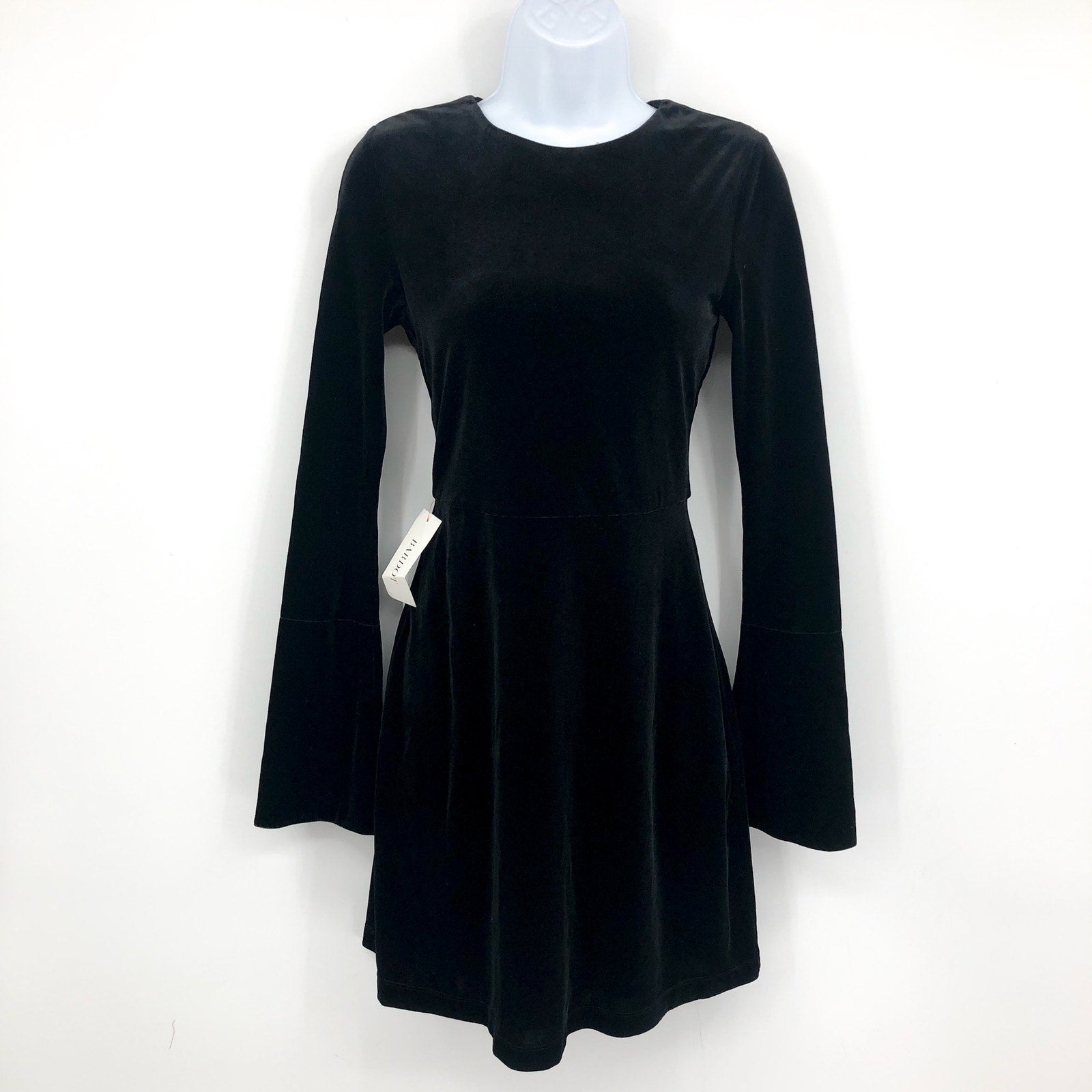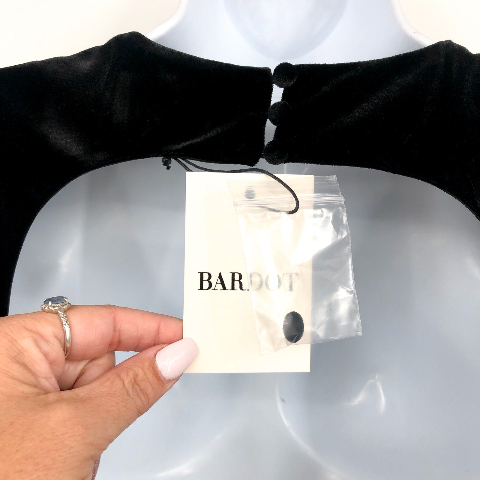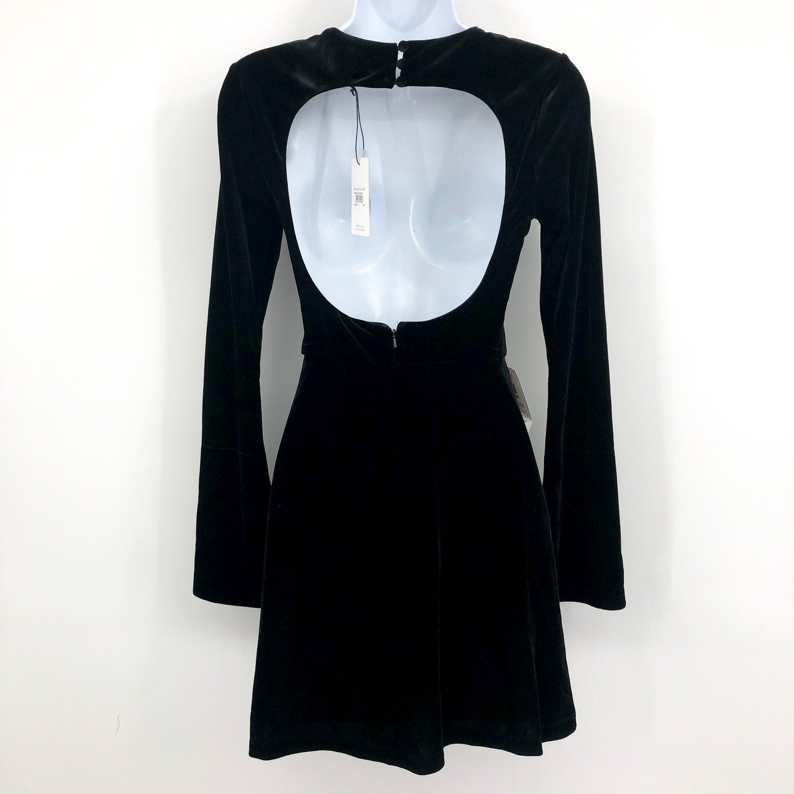 BARDOT Women's Kasra Velour Mini Dress XS US 2 Black Bell Sleeves Cut Out NWT